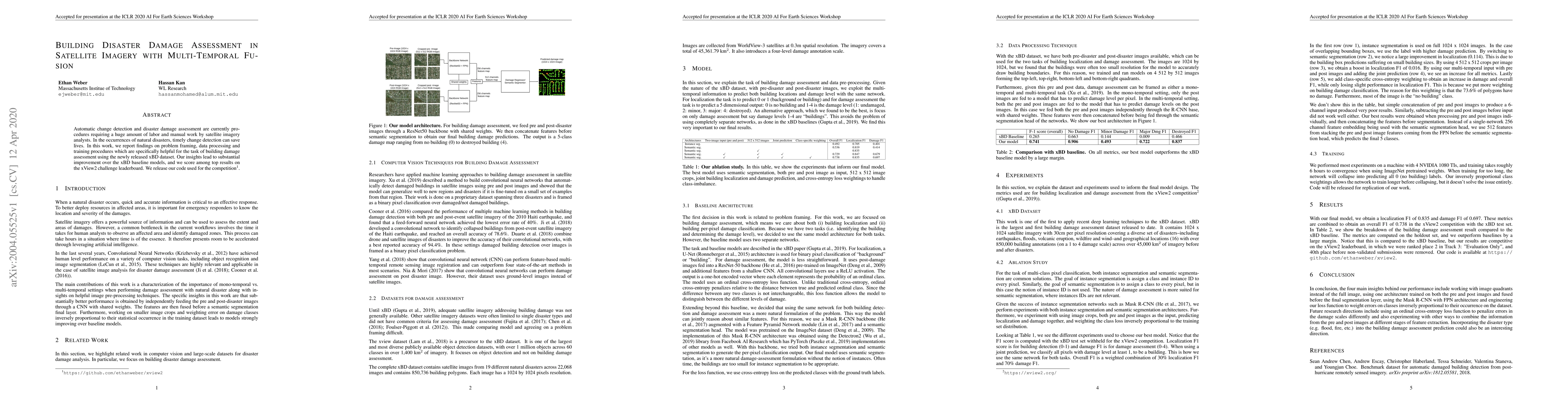 This paper presents an automated method for building damage assessment using multi-temporal satellite imagery fusion, significantly improving upon baseline models and achieving top results in the xView2 challenge. The authors release their code to facilitate further research in this area.
