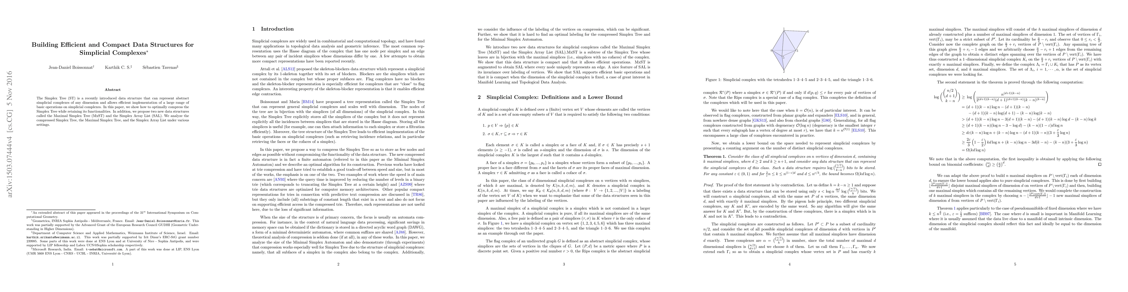 This paper introduces the Simplex Tree, a versatile data structure for representing abstract simplicial complexes, and presents methods for its optimal compression. It also proposes two new structures, the Maximal Simplex Tree and the Simplex Array List, and analyzes their performance under various conditions.