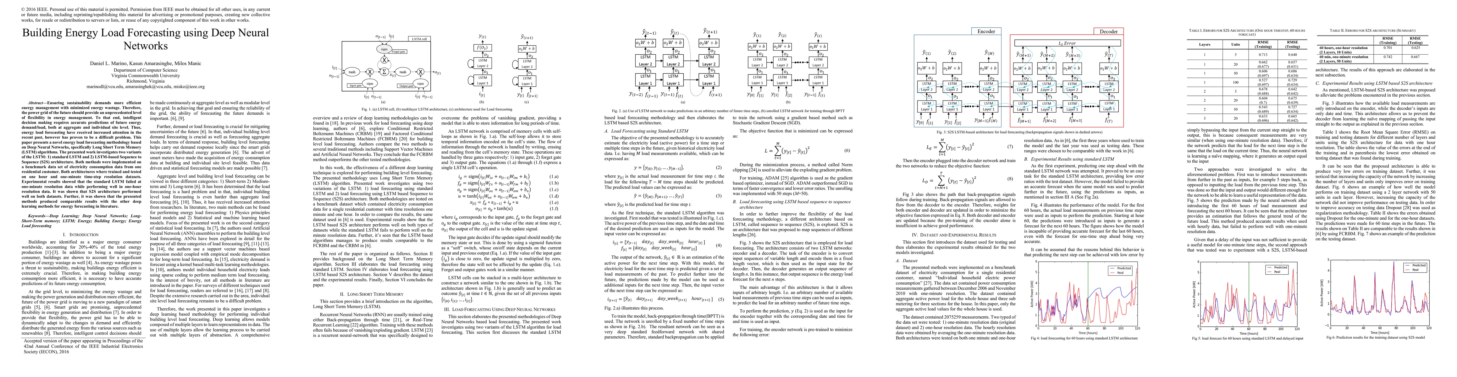 This paper proposes a novel energy load forecasting methodology using Deep Neural Networks, specifically LSTM and LSTM-based S2S architectures, to predict future energy demand. The S2S architecture outperformed the standard LSTM, especially at finer time-resolutions, demonstrating comparable results to other deep learning methods in the literature.