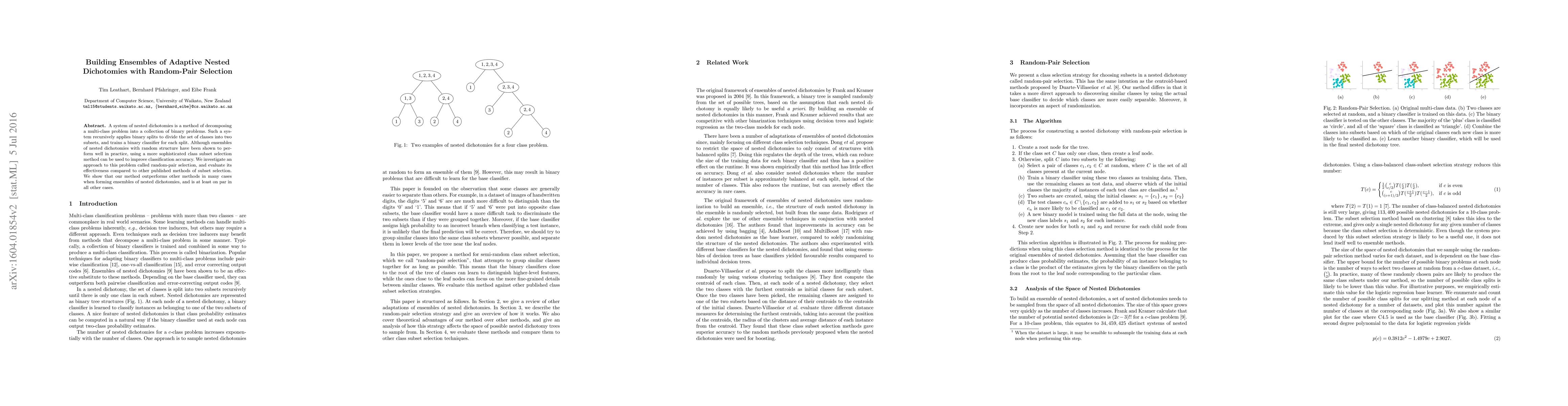 A system of nested dichotomies is a method of decomposing a multi-class problem into a collection of binary problems. Such a system recursively splits the set of classes into two subsets, and trains a binary classifier to distinguish between each subset. Even though ensembles of nested dichotomies with random structure have been shown to perform well in practice, using a more sophisticated class subset selection method can be used to improve classification accuracy. We investigate an approach to this problem called random-pair selection, and evaluate its effectiveness compared to other published methods of subset selection. We show that our method outperforms other methods in many cases when forming ensembles of nested dichotomies, and is at least on par in all other cases.