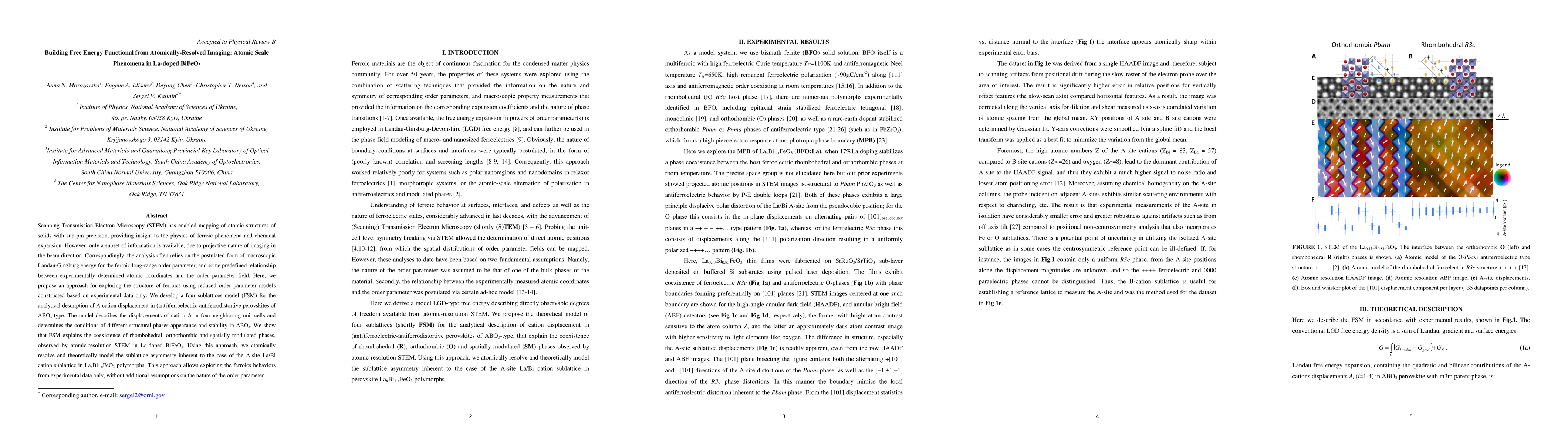 Scanning Transmission Electron Microscopy (STEM) has enabled mapping of atomic structures of solids with sub-pm precision, providing insight to the physics of ferroic phenomena and chemical expansion. However, only a subset of information is available, due to projective nature of imaging in the beam direction. Correspondingly, the analysis often relies on the postulated known form of macroscopic Landau-Ginzburg energy, and some predefined relationship between experimentally determined atomic coordinates and the order parameter field. Here, we propose an approach for exploring the structure of ferroics using reduced order parameter models constructed based on experimental data only. We develop a four sublattices model (FSM) for the analytical description of A-cation displacement in (anti)ferroelectric-antiferrodistortive perovskites of ABO3-type. The model describes the displacements of cation A in four neighboring unit cells and determines the conditions of different structural phases appearance and stability in ABO3. We show that FSM explains the coexistence of rhombohedral (R), orthorhombic (O) and spatially modulated (SM) phases, observed by atomic-resolution STEM in La-doped BiFeO3. Using this approach, we atomically resolve and theoretically model the sublattice asymmetry inherent to the case of the A-site La/Bi cation sublattice in LaxBi1-xFeO3 polymorphs. This approach allows exploring the ferroics behaviors from experimental data only, without additional assumptions on the nature of the order parameter.