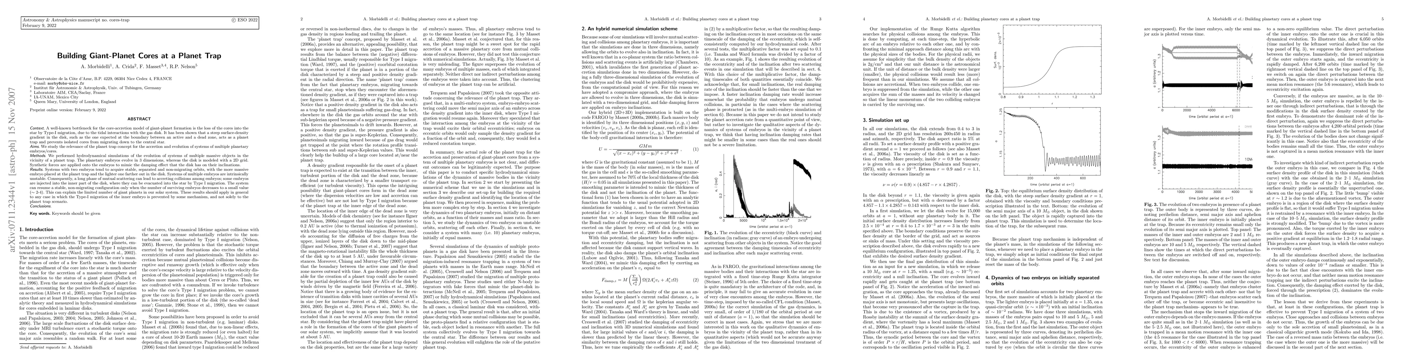 This research investigates the formation of giant-planet cores using hydrodynamical simulations, finding that a planet trap created by a steep surface-density gradient in the disk can prevent cores from migrating inward, leading to stable, non-migrating orbits for multiple embryos. However, systems with many embryos are unstable, often resulting in collisions and migrations that can limit the number of surviving giant planets.