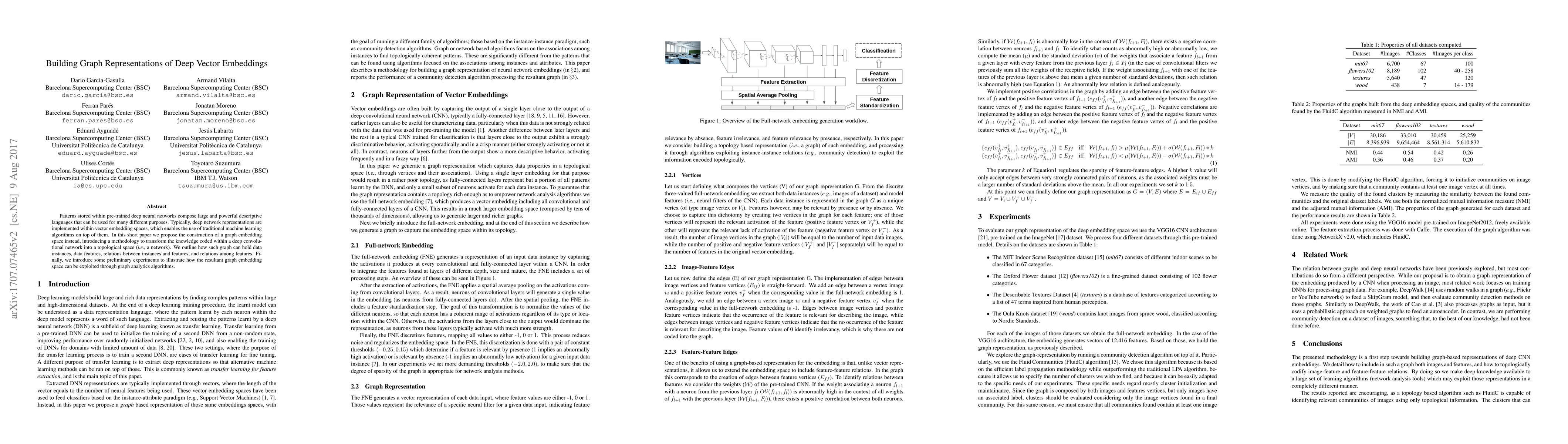 This paper proposes a methodology for constructing graph representations from deep neural network embeddings, transforming knowledge into a topological space that can encapsulate data instances, features, and their relations, and demonstrates initial experiments using graph analytics algorithms.
