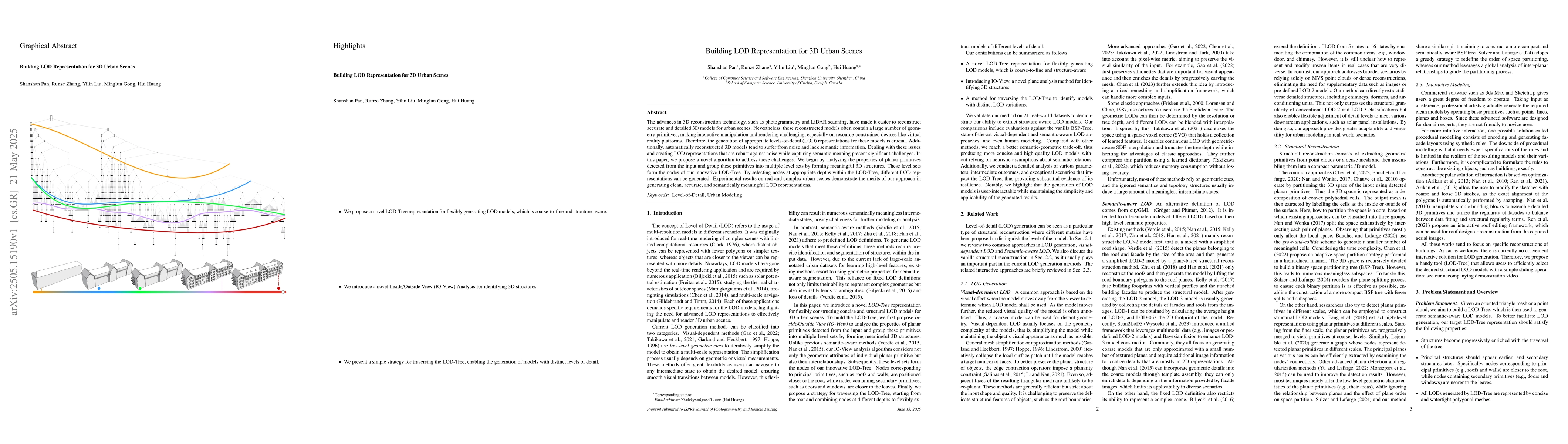 The novel LOD-Tree structure and the algorithm for generating LOD representations from planar primitives in 3D urban scenes.