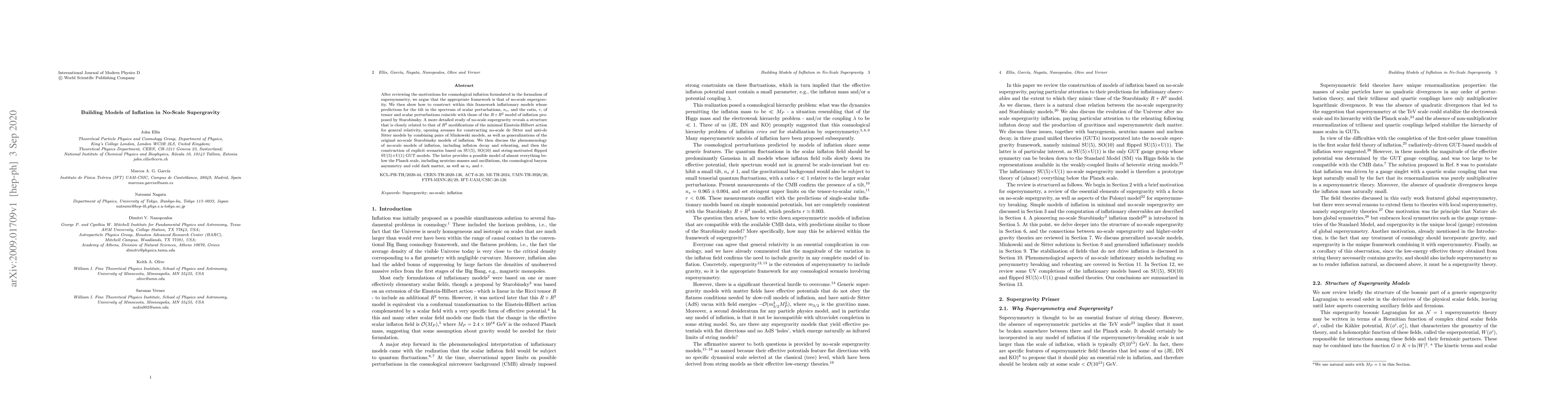 After reviewing the motivations for cosmological inflation formulated in the formalism of supersymmetry, we argue that the appropriate framework is that of no-scale supergravity. We then show how to construct within this framework inflationary models whose predictions for the tilt in the spectrum of scalar perturbations, $n_s$, and the ratio, $r$, of tensor and scalar perturbations coincide with those of the $R + R^2$ model of inflation proposed by Starobinsky. A more detailed study of no-scale supergravity reveals a structure that is closely related to that of $R^2$ modifications of the minimal Einstein-Hilbert action for general relativity, opening avenues for constructing no-scale de Sitter and anti-de Sitter models by combining pairs of Minkowski models, as well as generalizations of the original no-scale Starobinsky models of inflation. We then discuss the phenomenology of no-scale models of inflation, including inflaton decay and reheating, and then the construction of explicit scenarios based on SU(5), SO(10) and string-motivated flipped SU(5)$\times$U(1) GUT models. The latter provides a possible model of almost everything below the Planck scale, including neutrino masses and oscillations, the cosmological baryon asymmetry and cold dark matter, as well as $n_s$ and $r$.
