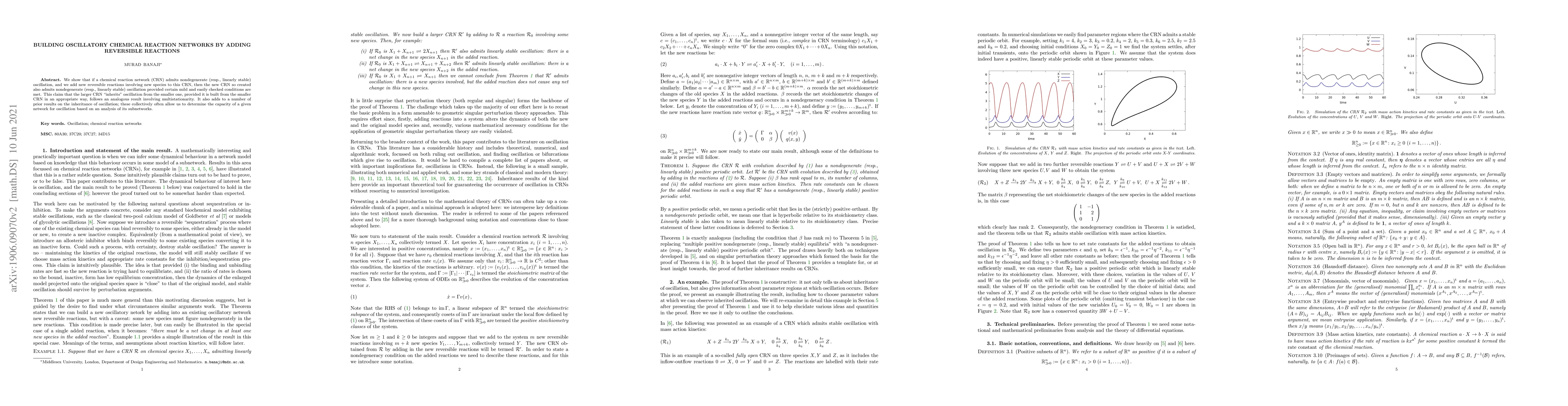 This paper demonstrates that adding reversible reactions involving new species to a chemical reaction network that exhibits nondegenerate (or linearly stable) oscillations will result in a new network that also supports such oscillations, provided specific, easily verifiable conditions are met. This inheritance of oscillatory behavior is analogous to results on multistationarity and contributes to understanding the capacity of networks for oscillation based on subnetwork analysis.