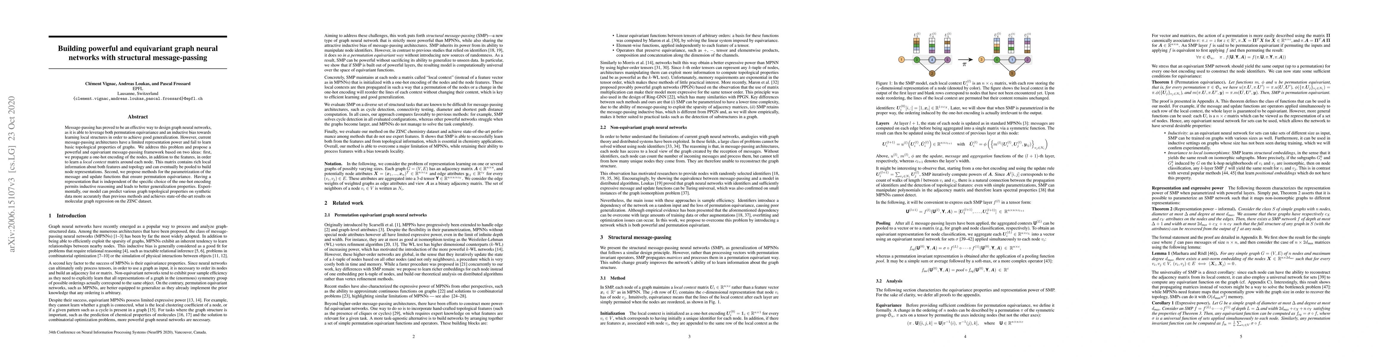 This paper proposes a powerful and equivariant graph neural network framework using structural message-passing, which leverages one-hot encodings and parameterization methods to enhance representation and generalization. The model achieves state-of-the-art results on molecular graph regression and predicts topological properties more accurately.