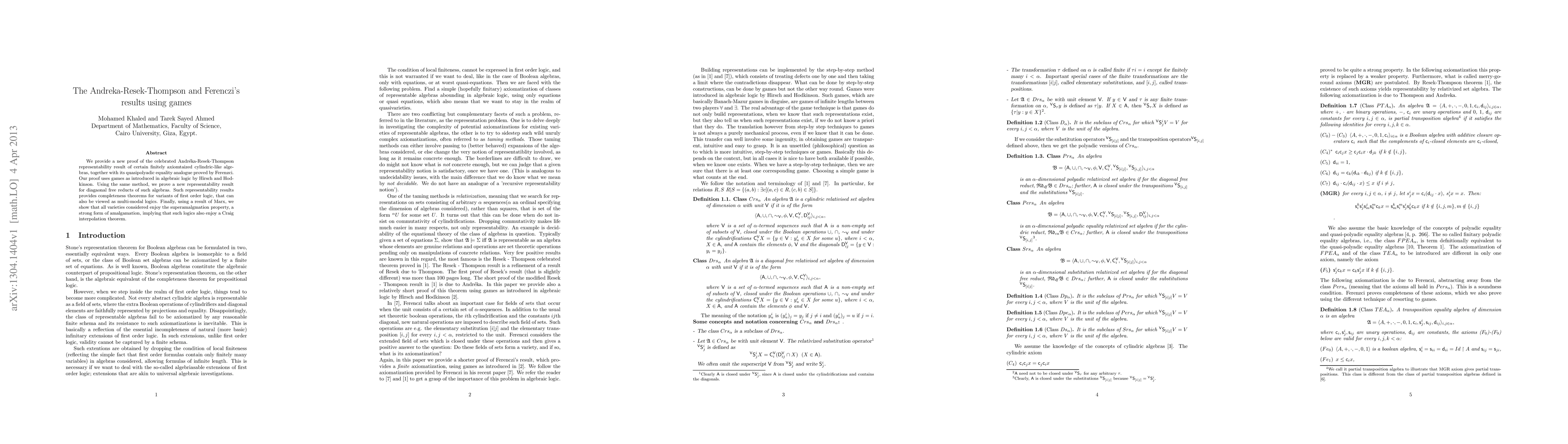 We prove the celebrated representation theorem of Andreka-Resek-Thompson, together with its polyadic analogue by Ferenczi, using games as introduced in algebraic logic by Hirsch and Hodkinson. We also show that atomic algebras are completely representable and that all such varieties of relativized set algebras have the strong amalgmation property.