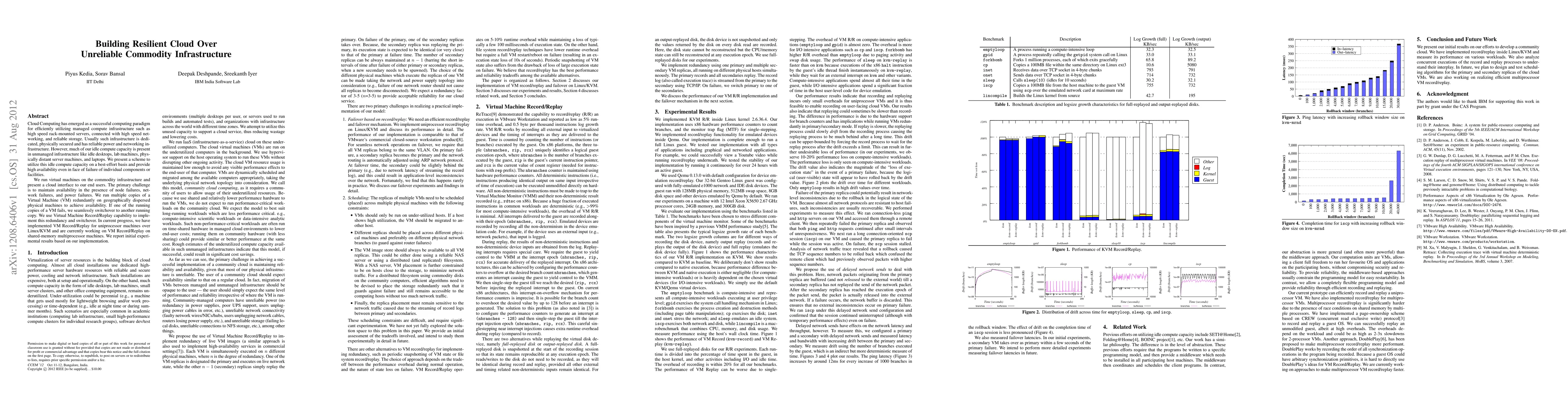 Cloud Computing has emerged as a successful computing paradigm for efficiently utilizing managed compute infrastructure such as high speed rack-mounted servers, connected with high speed networking, and reliable storage. Usually such infrastructure is dedicated, physically secured and has reliable power and networking infrastructure. However, much of our idle compute capacity is present in unmanaged infrastructure like idle desktops, lab machines, physically distant server machines, and laptops. We present a scheme to utilize this idle compute capacity on a best-effort basis and provide high availability even in face of failure of individual components or facilities. We run virtual machines on the commodity infrastructure and present a cloud interface to our end users. The primary challenge is to maintain availability in the presence of node failures, network failures, and power failures. We run multiple copies of a Virtual Machine (VM) redundantly on geographically dispersed physical machines to achieve availability. If one of the running copies of a VM fails, we seamlessly switchover to another running copy. We use Virtual Machine Record/Replay capability to implement this redundancy and switchover. In current progress, we have implemented VM Record/Replay for uniprocessor machines over Linux/KVM and are currently working on VM Record/Replay on shared-memory multiprocessor machines. We report initial experimental results based on our implementation.