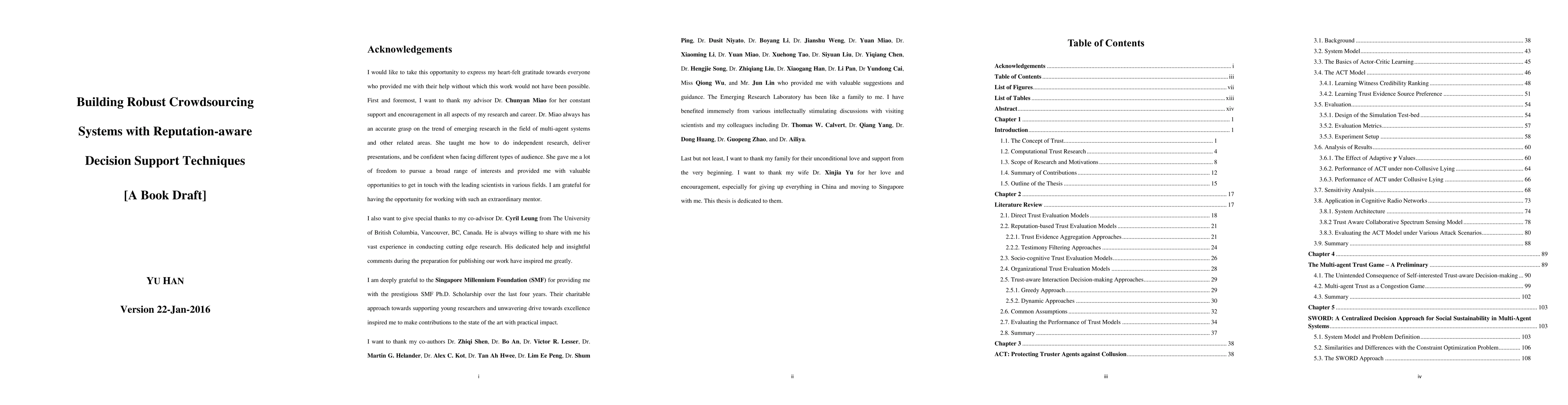 Crowdsourcing refers to the arrangement in which contributions are solicited from a large group of unrelated people. Due to this nature, crowdsourcers (or task requesters) often face uncertainty about the workers' capabilities which, in turn, affects the quality and timeliness of the results obtained. Trust is a mechanism used by people to facilitate interactions in human societies where risk and uncertain are common. The crucial challenge to building a robust crowdsourcing system is how to make trust-aware task delegation decisions to efficiently utilize the capacities of workers (or trustee agents) to achieve high social welfare? This book presents the research addressing this challenge. It goes beyond the existing trust management research framework by removing a widespread assumption implicitly adopted by existing research: that a trustee agent can process an unlimited number of interaction requests per discrete time unit without compromising its performance as perceived by the task requesters (or truster agents). Decision support in crowdsourcing is re-formalized as a multi-agent trust game based on the principles of the Congestion Game, which is solved by two trust-aware interaction decision-making approaches: 1) the Social Welfare Optimizing approach for Reputation-aware Decision-making (SWORD) approach, and 2) the Distributed Request Acceptance approach for Fair utilization of Trustee agents (DRAFT). SWORD is designed for centralized systems, while DRAFT is designed for fully distributed systems. Theoretical analyses have shown that the social welfare produced by these two approaches can be made closer to optimal by adjusting only one key parameter. With these two approaches, the framework of research for crowdsourcing systems can be enriched to handle more realistic scenarios where workers have varied and limited capabilities.