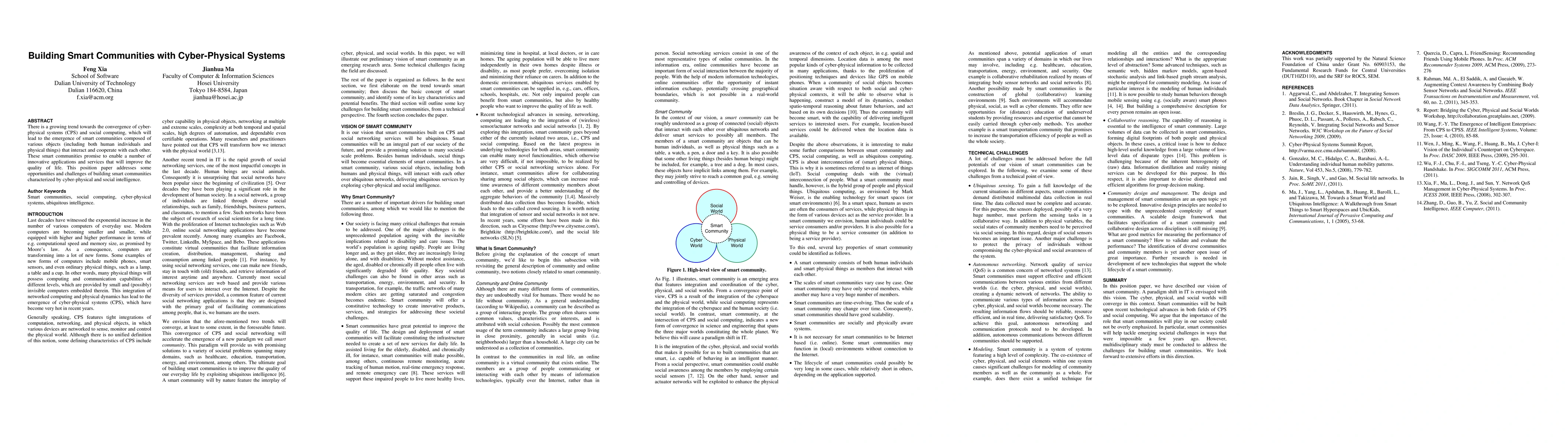 A multidisciplinary approach combining CPS and social computing was adopted to design and develop smart communities.