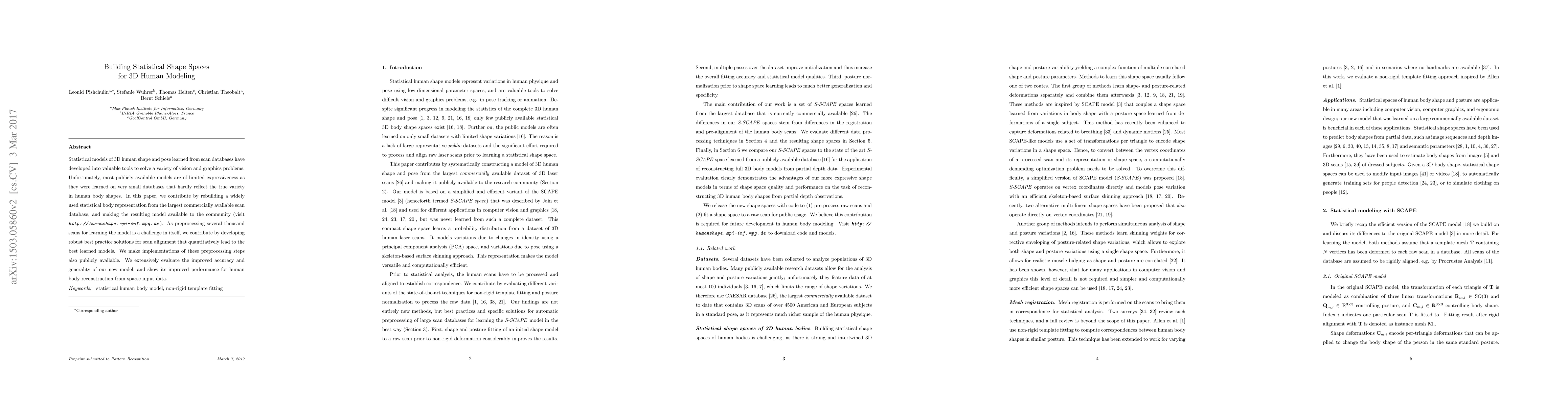A new statistical model of 3D human shape and pose has been created using a large commercially available scan database, improving accuracy and generality for applications like human body reconstruction.
