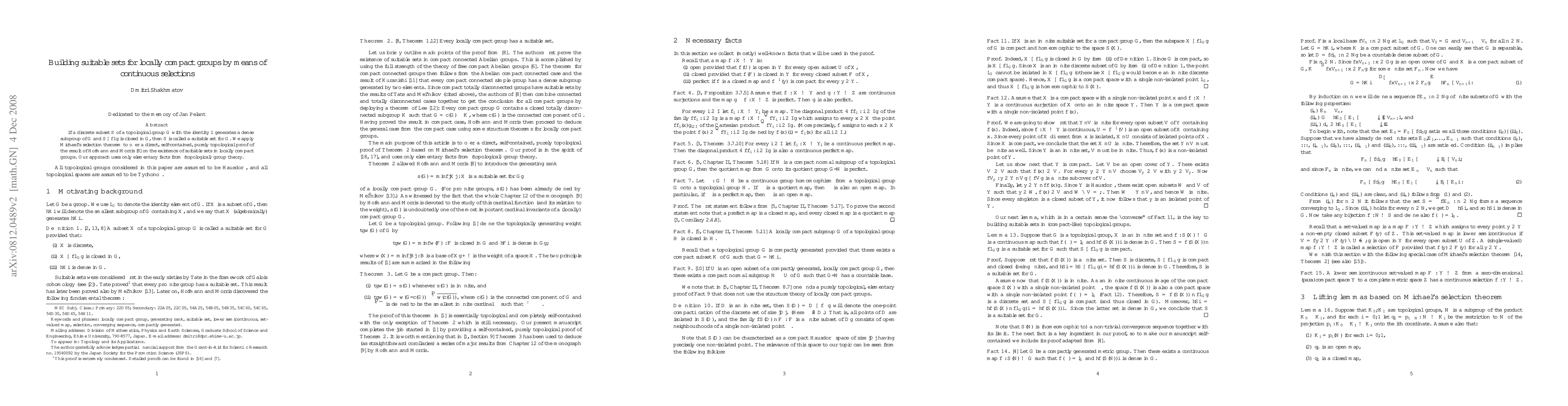 If a discrete subset S of a topological group G with the identity 1 generates a dense subgroup of G and S \cup {1} is closed in G, then S is called a suitable set for G. We apply Michael's selection theorem to offer a direct, self-contained, purely topological proof of the result of Hofmann and Morris on the existence of suitable sets in locally compact groups. Our approach uses only elementary facts from (topological) group theory.
