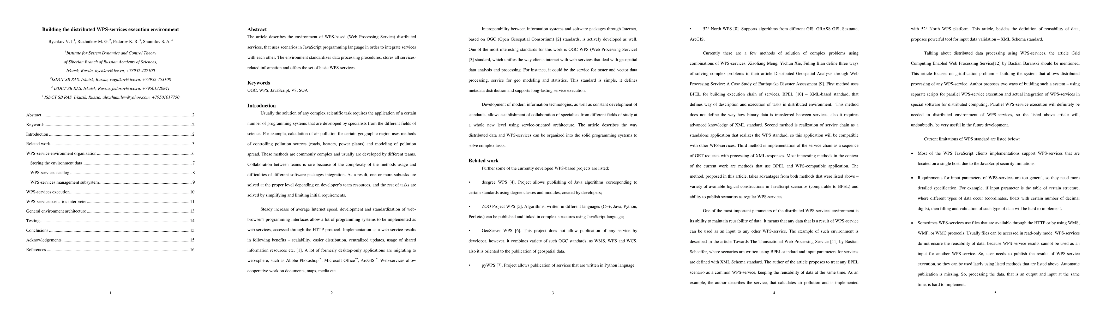 The article describes the environment of WPS-based (Web Processing Service) distributed services, that uses scenarios in JavaScript programming language in order to integrate services with each other. The environment standardizes data processing procedures, stores all services-related information and offers the set of basic WPS-services.