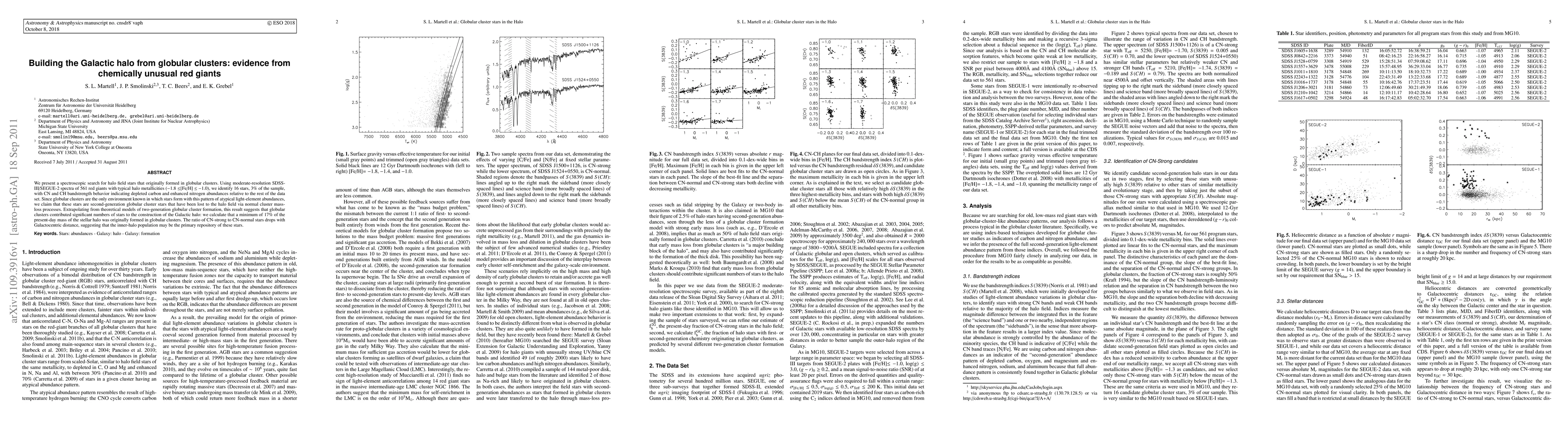 This study identifies 16 red giants from a sample of 561 with atypical light-element abundances, indicating they originated in globular clusters. These findings suggest that globular clusters contributed significantly to the Galactic halo, with at least 17% of its mass originally formed in such clusters.