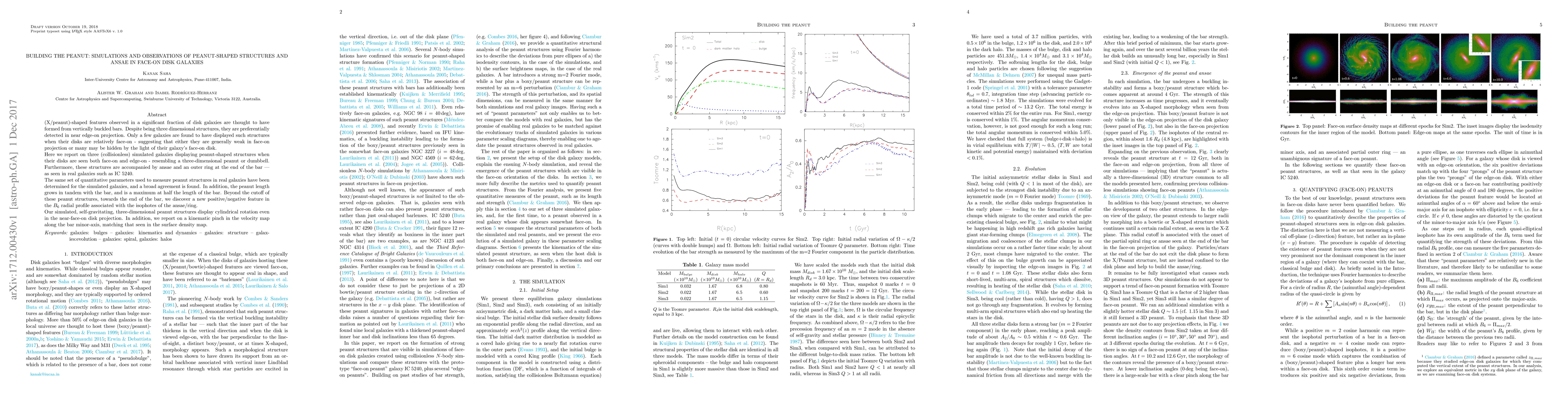 This paper reports on simulations of peanut-shaped structures in face-on disk galaxies, showing that these structures can be detected even when viewed face-on, accompanied by ansae and an outer ring. The simulations reveal a kinematic pinch along the bar's minor axis, similar to observations.