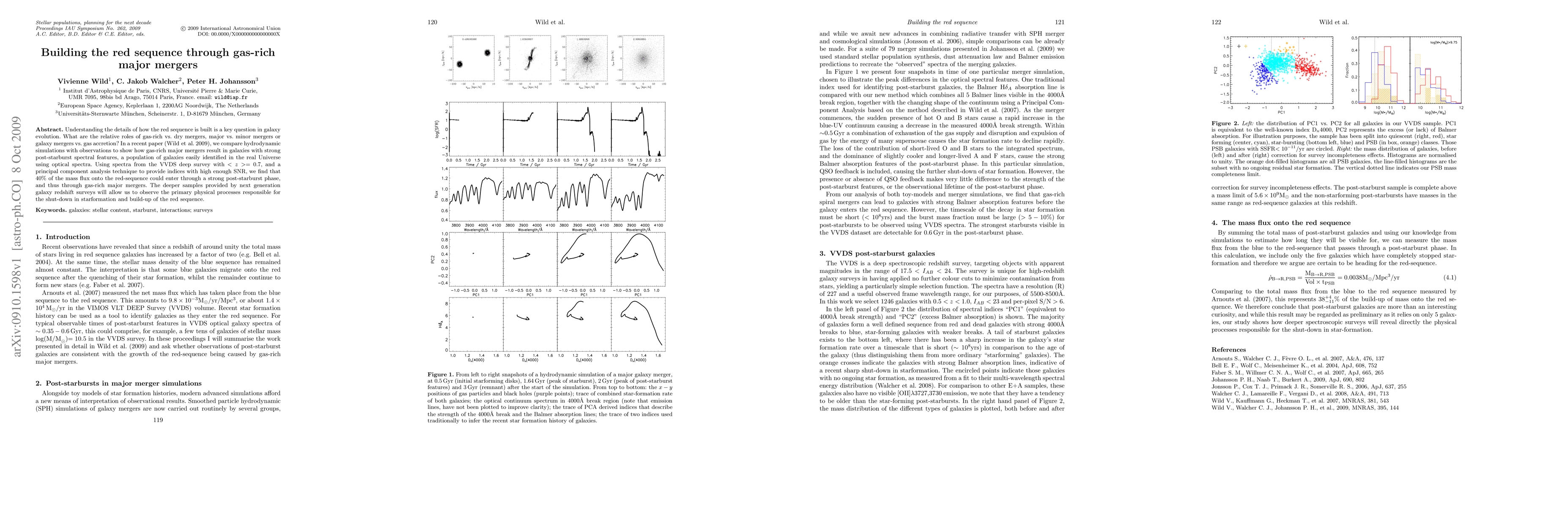 Understanding the details of how the red sequence is built is a key question in galaxy evolution. What are the relative roles of gas-rich vs. dry mergers, major vs. minor mergers or galaxy mergers vs. gas accretion? In Wild et al. 2009 we compare hydrodynamic simulations with observations to show how gas-rich major mergers result in galaxies with strong post-starburst spectral features, a population of galaxies easily identified in the real Universe using optical spectra. Using spectra from the VVDS deep survey with z~0.7, and a principal component analysis technique to provide indices with high enough SNR, we find that 40% of the mass flux onto the red-sequence could enter through a strong post-starburst phase, and thus through gas-rich major mergers. The deeper samples provided by next generation galaxy redshift surveys will allow us to observe the primary physical processes responsible for the shut-down in starformation and build-up of the red sequence.
