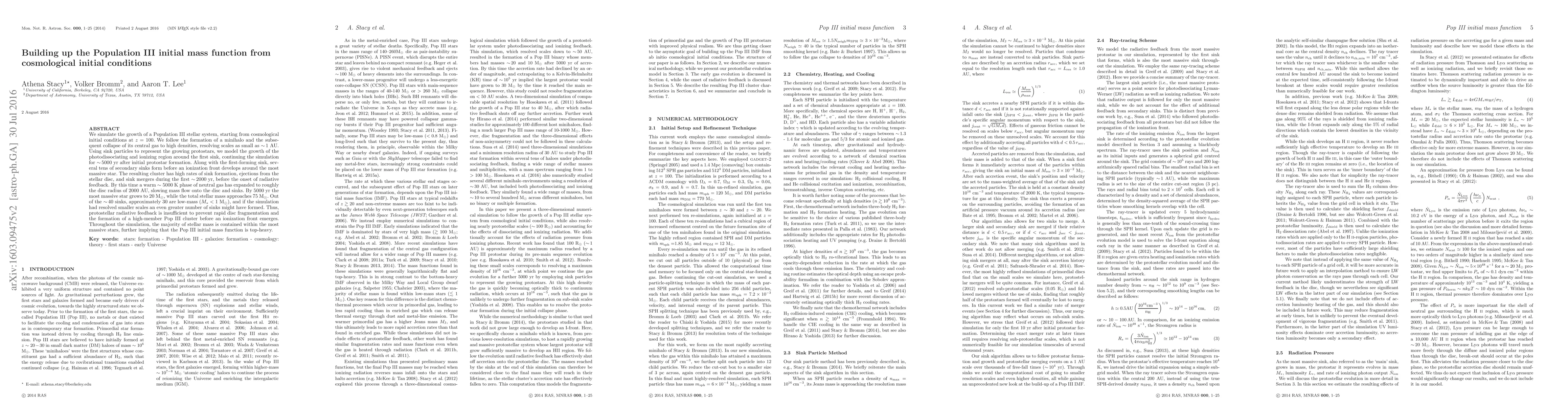 This paper simulates the formation of a Population III stellar cluster from cosmological initial conditions at z=100, revealing rapid formation of a high-member cluster with a top-heavy initial mass function, dominated by the most massive stars. The simulation shows that protostellar feedback is insufficient to prevent fragmentation and rapid sink formation before an ionization front develops.