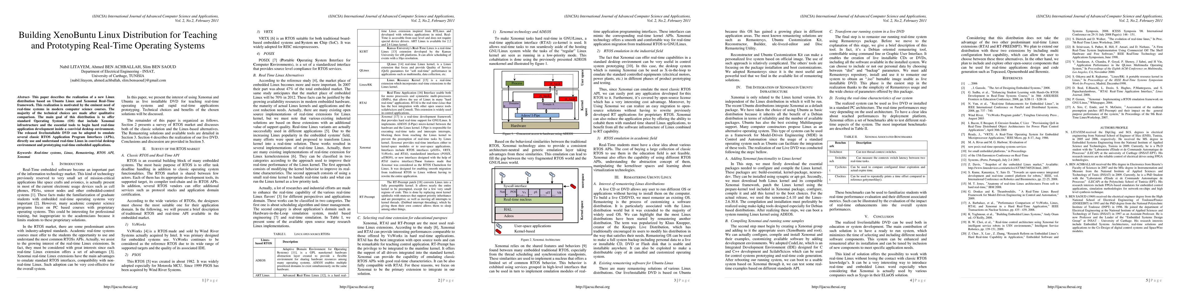 This paper describes the realization of a new Linux distribution based on Ubuntu Linux and Xenomai Real-Time framework. This realization is motivated by the eminent need of real-time systems in modern computer science courses. The majority of the technical choices are made after qualitative comparison. The main goal of this distribution is to offer standard Operating Systems (OS) that include Xenomai infrastructure and the essential tools to begin hard real-time application development inside a convivial desktop environment. The released live/installable DVD can be adopted to emulate several classic RTOS Application Program Interfaces (APIs), directly use and understand real-time Linux in convivial desktop environment and prototyping real-time embedded applications.