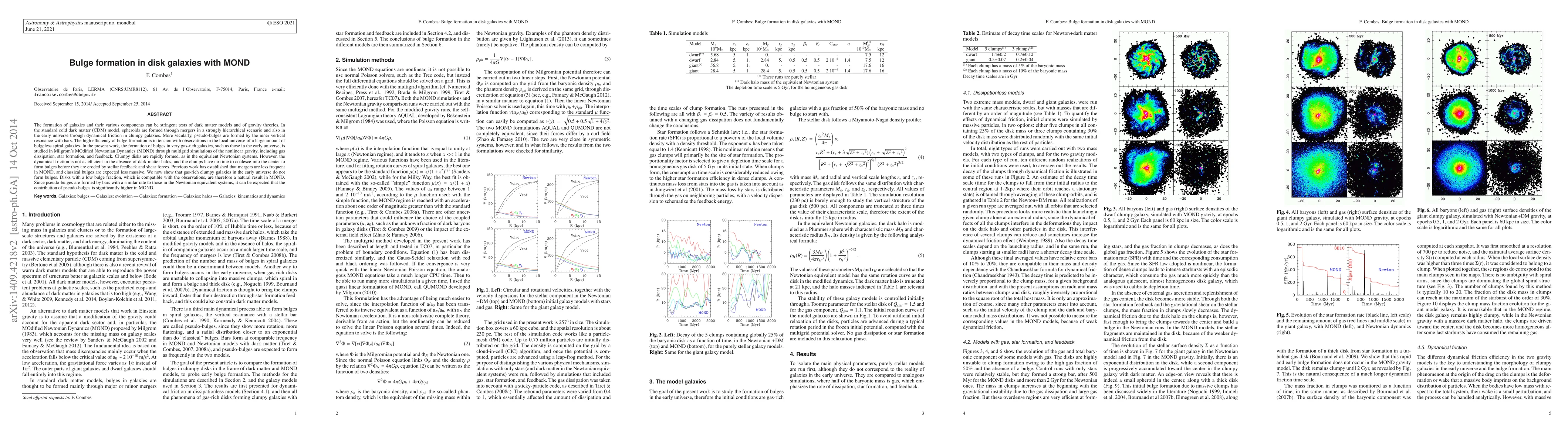 This paper investigates bulge formation in gas-rich disk galaxies under Milgrom's MOdified Newtonian Dynamics (MOND), finding that in the absence of dark matter, dynamical friction is less effective, preventing clump coalescence into central bulges. It concludes that pseudo-bulges form at a similar rate in MOND as in Newtonian systems, suggesting a higher contribution from pseudo-bulges in MOND galaxies.