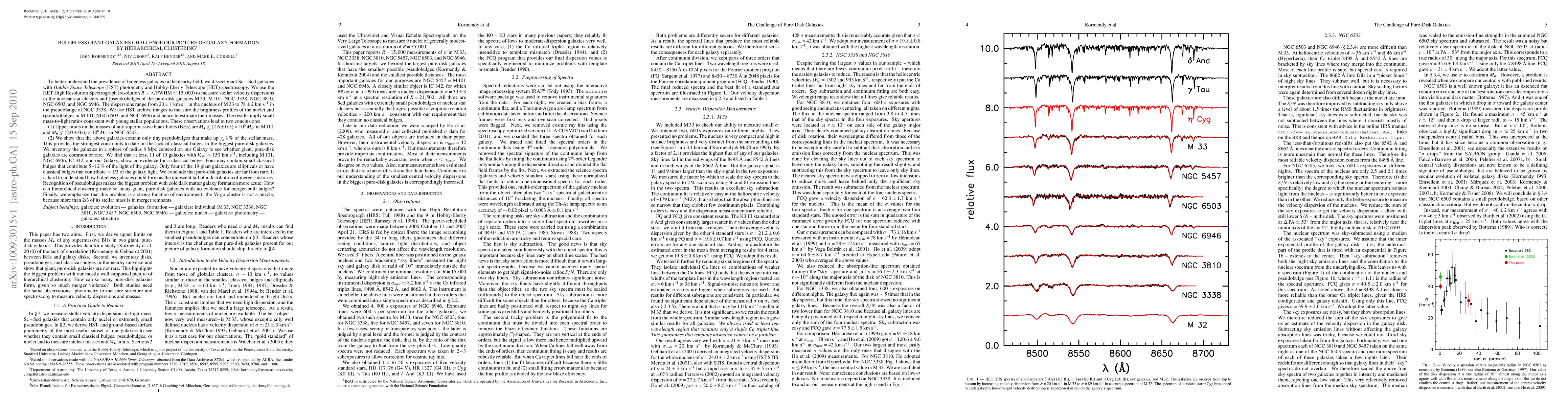 We dissect giant Sc-Scd galaxies with Hubble Space Telescope photometry and Hobby-Eberly Telescope spectroscopy. We use HET's High Resolution Spectrograph (resolution = 15,000) to measure stellar velocity dispersions in the nuclear star clusters and pseudobulges of the pure-disk galaxies M33, M101, NGC 3338, NGC 3810, NGC 6503, and NGC 6946. We conclude: (1) Upper limits on the masses of any supermassive black holes are MBH <= (2.6+-0.5) * 10**6 M_Sun in M101 and MBH <= (2.0+-0.6) * 10**6 M_Sun in NGC 6503. (2) HST photometry shows that the above galaxies contain tiny pseudobulges that make up <~ 3 % of the stellar mass but no classical bulges. We inventory a sphere of radius 8 Mpc centered on our Galaxy to see whether giant, pure-disk galaxies are common or rare. In this volume, 11 of 19 galaxies with rotation velocity > 150 km/s show no evidence for a classical bulge. Four may contain small classical bulges that contribute 5-12% of the galaxy light. Only 4 of the 19 giant galaxies are ellipticals or have classical bulges that contribute 1/3 of the galaxy light. So pure-disk galaxies are far from rare. It is hard to understand how they could form as the quiescent tail of a distribution of merger histories. Recognition of pseudobulges makes the biggest problem with cold dark matter galaxy formation more acute: How can hierarchical clustering make so many giant, pure-disk galaxies with no evidence for merger-built bulges? This problem depends strongly on environment: the Virgo cluster is not a puzzle, because >2/3 of its stellar mass is in merger remnants.