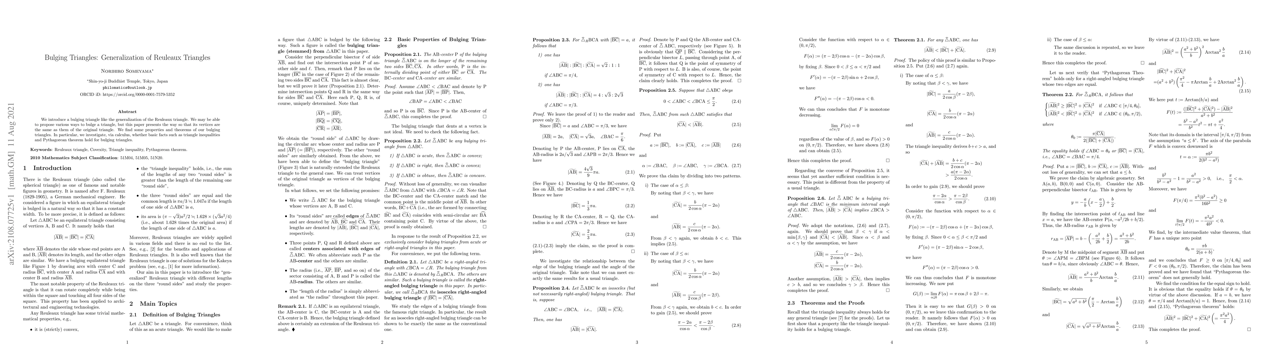 Researchers introduce a new shape called a bulging triangle, which is a generalized version of the Reuleaux triangle. They investigate its properties and find that certain mathematical principles like triangle inequalities hold true for this shape.