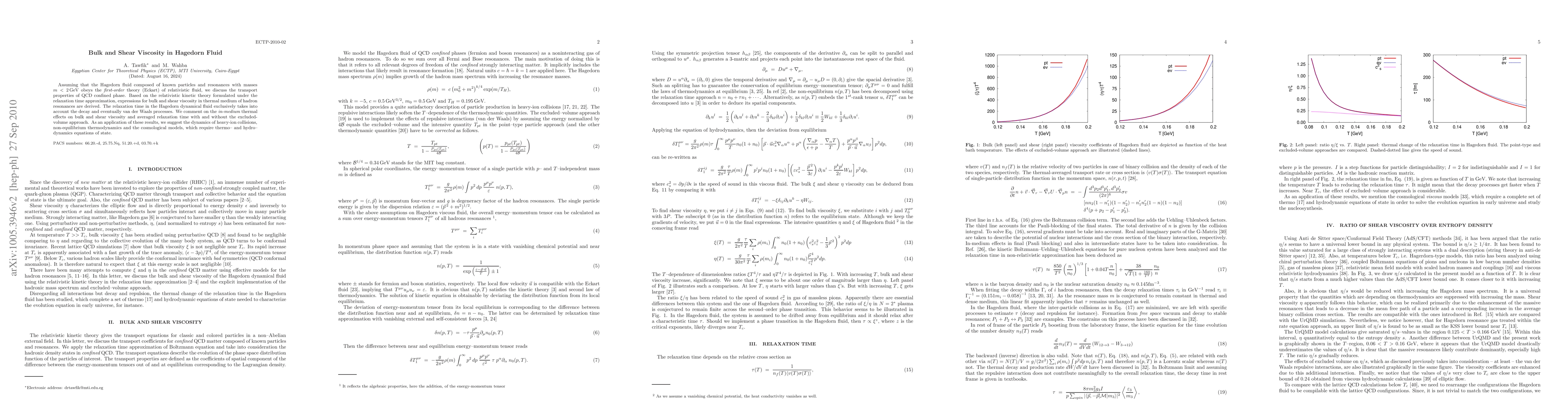 Assuming that the Hagedorn fluid composed of known particles and resonances with masses $m<2\,$GeV obeys the {\it first-order} theory (Eckart) of relativistic fluid, we discuss the transport properties of QCD confined phase. Based on the relativistic kinetic theory formulated under the relaxation time approximation, expressions for bulk and shear viscosity in thermal medium are derived. The relaxation time in the Hagedorn dynamical fluid exclusively takes into account the decay and eventually van der Waals processes. We comment on the {\it in-medium} thermal effects on bulk and shear viscosities and averaged relaxation time with and without the excluded-volume approach. As an application of these results, we suggest the dynamics of heavy-ion collisions, non-equlibrium thermodynamics and the cosmological models, which require thermo and hydrodynamics equations of state.