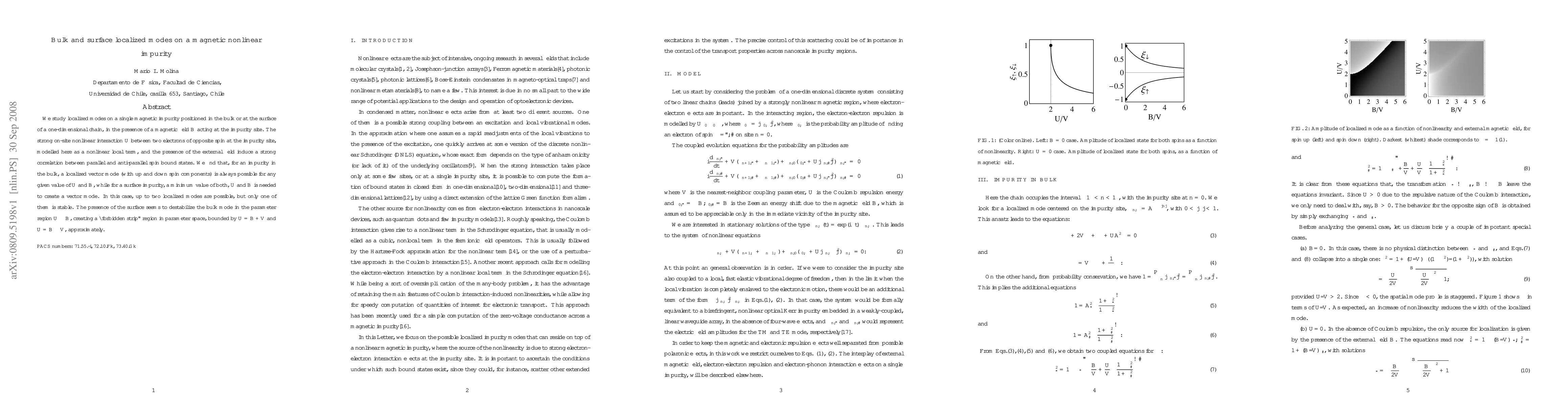 Researchers discovered localized modes on a magnetic impurity in 1D chain with varying strength of nonlinearity and magnetic field; surface impurities require specific conditions to create vector modes, which can be unstable.