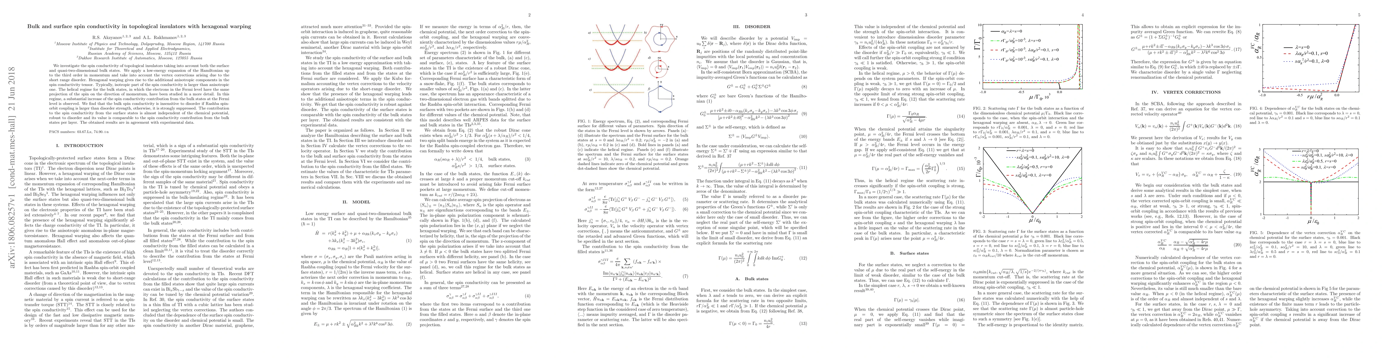 We investigate the spin conductivity of topological insulators taking into account both the surface and quasi-two-dimensional bulk states. We apply a low-energy expansion of the Hamiltonian up to the third order in momentum and take into account the vertex corrections arising due to the short range disorder. Hexagonal warping gives rise to the additional anisotropic components in the spin conductivity tensor. Typically, isotropic part of the spin conductivity is larger than anisotropic one. The helical regime for the bulk states, in which the electrons in the Fermi level have the same projection of the spin on the direction of momentum, have been studied in a more detail. In this regime, a substantial increase of the spin conductivity contribution from the bulk states at the Fermi level is observed. We find that the bulk spin conductivity is insensitive to disorder if Rashba spin-orbit coupling is larger than disorder strength, otherwise, it is strongly suppressed. The contribution to the spin conductivity from the surface states is almost independent of the chemical potential, robust to disorder and its value is comparable to the spin conductivity contribution from the bulk states per layer. The obtained results are in agreement with experimental data.