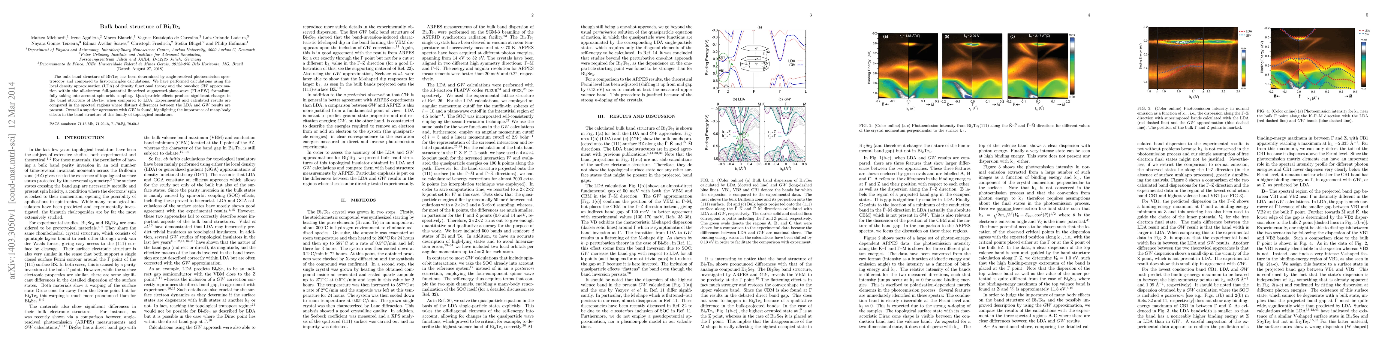 Researchers used angle-resolved photoemission spectroscopy to study Bi2Te3's bulk band structure, finding significant changes when compared to first-principles calculations that took into account many-body effects.