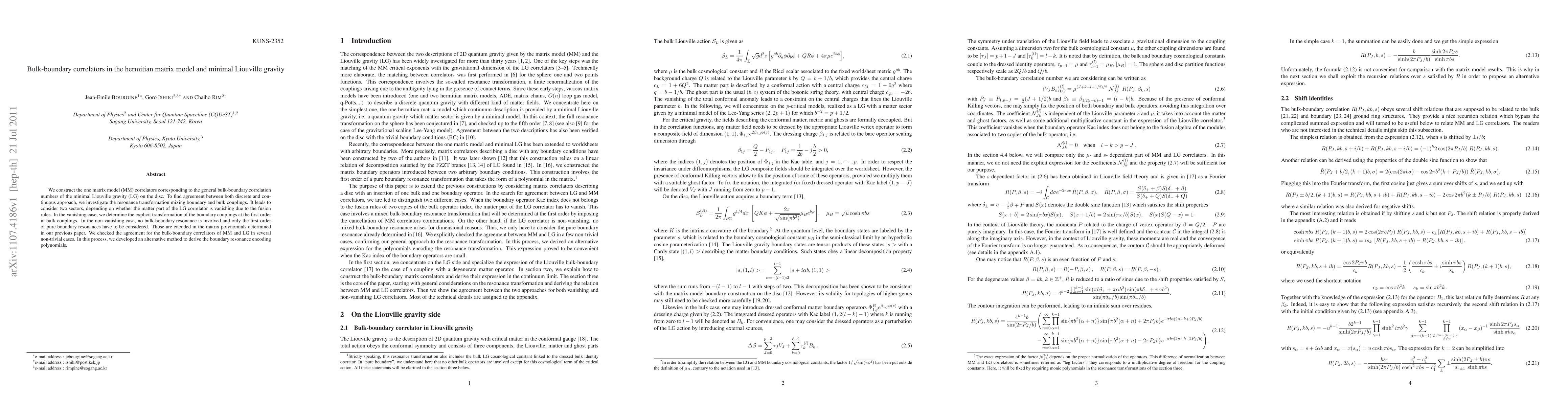 Researchers develop a method to compare bulk-boundary correlators between two theories, the hermitian matrix model and minimal Liouville gravity, finding agreement in several non-trivial cases.