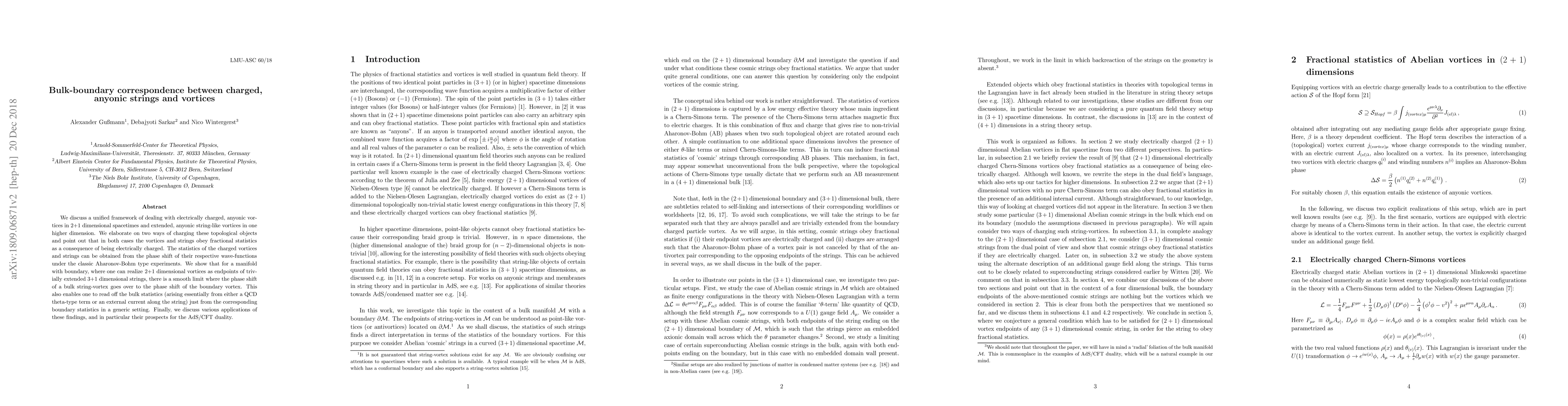 Researchers propose a unified framework to study charged, anyonic strings and vortices in 2+1 dimensional spacetimes, revealing their fractional statistics and enabling the calculation of bulk properties from boundary data.