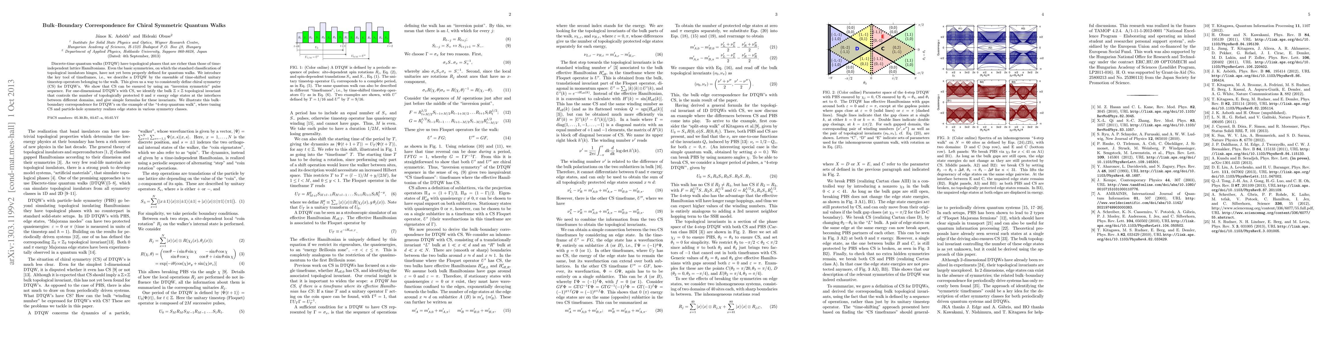 This paper introduces a method to define chiral symmetry for discrete-time quantum walks (DTQW) using timeframes, and establishes a bulk-boundary correspondence for these walks, identifying topological invariants that determine the number of edge states in one-dimensional systems. The study demonstrates this correspondence with the "4-step quantum walk" example.