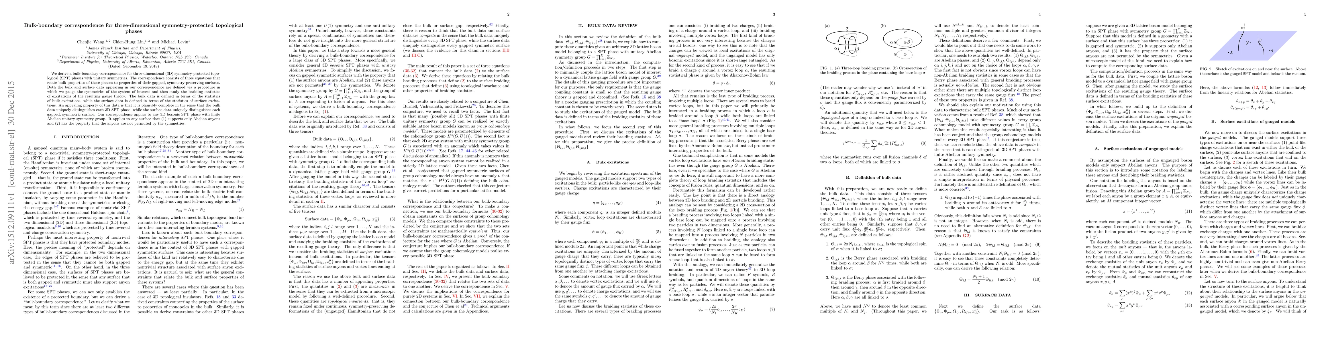 This paper establishes a bulk-boundary correspondence for 3D symmetry-protected topological phases, defining bulk and surface data via gauged symmetries and excitation statistics. The correspondence uniquely identifies 3D SPT phases and their gapped, symmetry-preserving surfaces.