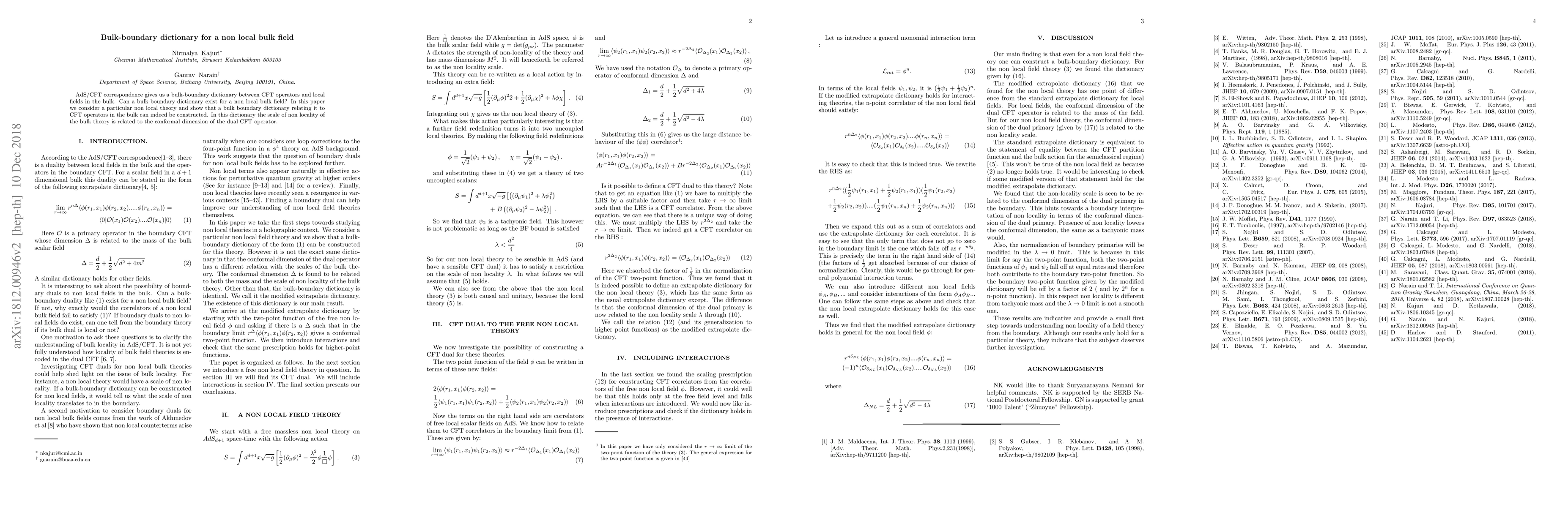 This paper explores the possibility of a bulk-boundary dictionary for non-local bulk fields in the context of AdS/CFT correspondence. It demonstrates that a dictionary can be constructed for a specific non-local theory, linking it to CFT operators, where the scale of non-locality correlates with the conformal dimension of the dual CFT operator.