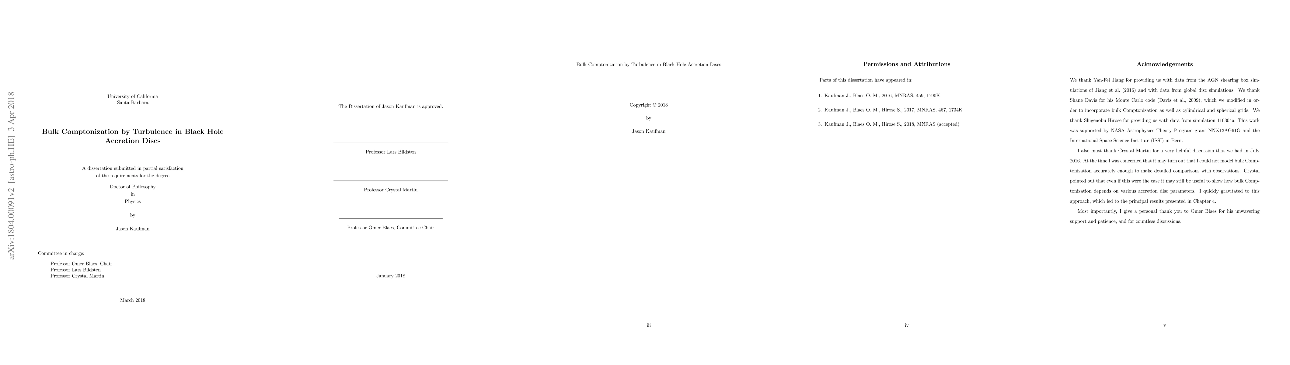 Radiation pressure dominated accretion discs may have turbulent velocities that exceed the electron thermal velocities. Bulk Comptonization by the turbulence may therefore dominate over thermal Comptonization in determining the emergent spectrum. We discuss how to self-consistently resolve and interpret this effect in calculations of spectra of radiation MHD simulations. In particular, we show that this effect is dominated by radiation viscous dissipation and can be treated as thermal Comptonization with an equivalent temperature. We investigate whether bulk Comptonization may provide a physical basis for warm Comptonization models of the soft X-ray excess in AGN. We characterize our results with temperatures and optical depths to make contact with other models of this component. We show that bulk Comptonization shifts the Wien tail to higher energy and lowers the gas temperature, broadening the spectrum. More generally, we model the dependence of this effect on a wide range of fundamental accretion disc parameters, such as mass, luminosity, radius, spin, inner boundary condition, and alpha. Because our model connects bulk Comptonization to one dimensional vertical structure temperature profiles in a physically intuitive way, it will be useful for understanding this effect in future simulations run in new regimes. We also develop a global Monte Carlo code to study this effect in global radiation MHD simulations. This code can be used more broadly to compare global simulations with observed systems, and in particular to investigate whether magnetically dominated discs can explain why observed high Eddington accretion discs appear to be thermally stable.