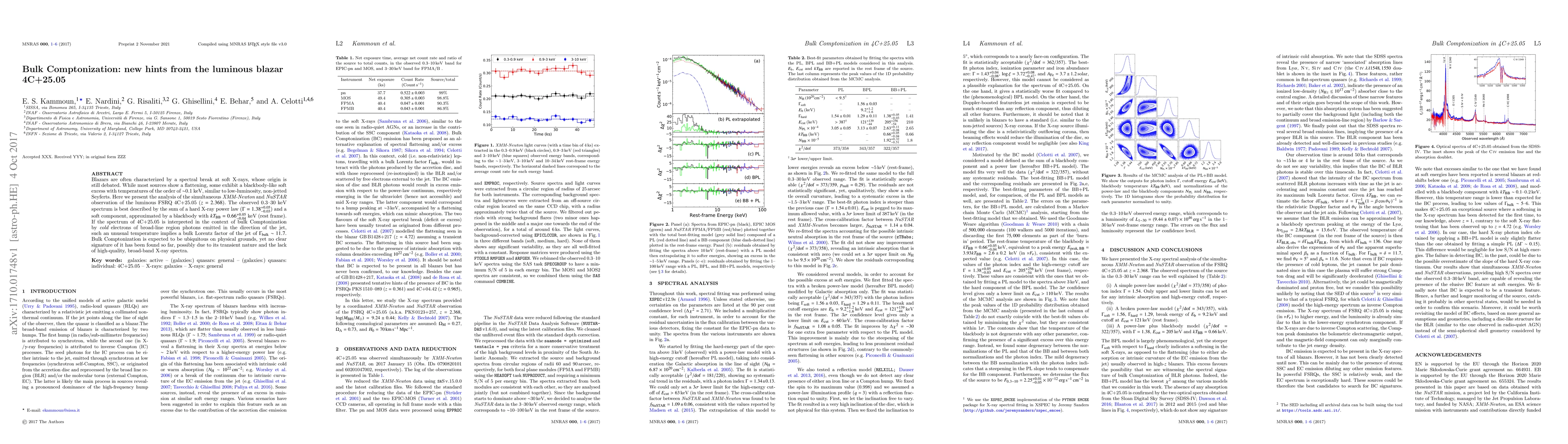 Blazars are often characterized by a spectral break at soft X-rays, whose origin is still debated. While most sources show a flattening, some exhibit a blackbody-like soft excess with temperatures of the order of $\sim$0.1 keV, similar to low-luminosity, non-jetted Seyferts. Here we present the analysis of the simultaneous XMM-Newton and NuSTAR observation of the luminous FSRQ 4C+25.05 ($z=2.368$). The observed 0.3-30 keV spectrum is best described by the sum of a hard X-ray power law ($\Gamma = 1.38_{-0.03}^{+0.05}$) and a soft component, approximated by a blackbody with $kT_{\rm BB} = 0.66_{-0.04}^{+0.05}$ keV (rest frame). If the spectrum of 4C+25.05 is interpreted in the context of bulk Comptonization by cold electrons of broad-line region photons emitted in the direction of the jet, such an unusual temperature implies a bulk Lorentz factor of the jet of $\Gamma_{\rm bulk}\sim 11.7$. Bulk Comptonization is expected to be ubiquitous on physical grounds, yet no clear signature of it has been found so far, possibly due to its transient nature and the lack of high-quality, broad-band X-ray spectra.