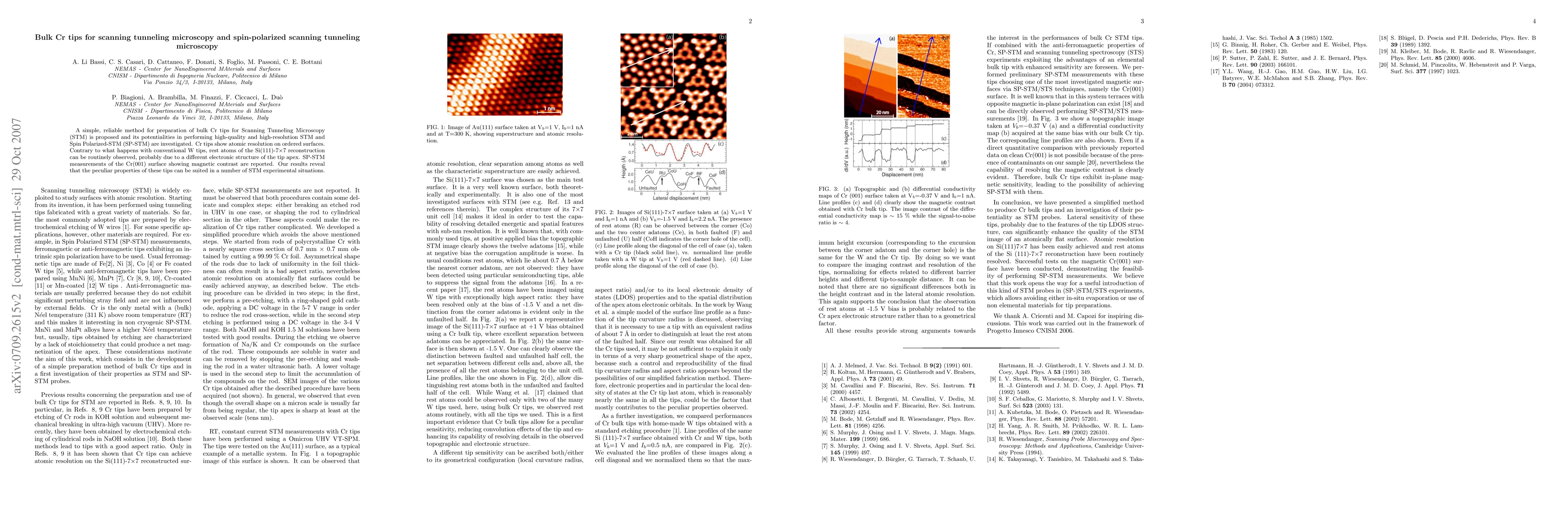 This research proposes a reliable method for preparing bulk chromium (Cr) tips for Scanning Tunneling Microscopy (STM) and Spin Polarized-STM (SP-STM), demonstrating their effectiveness in achieving atomic resolution and observing the Si(111)-7x7 reconstruction and magnetic contrast on Cr(001) surfaces.