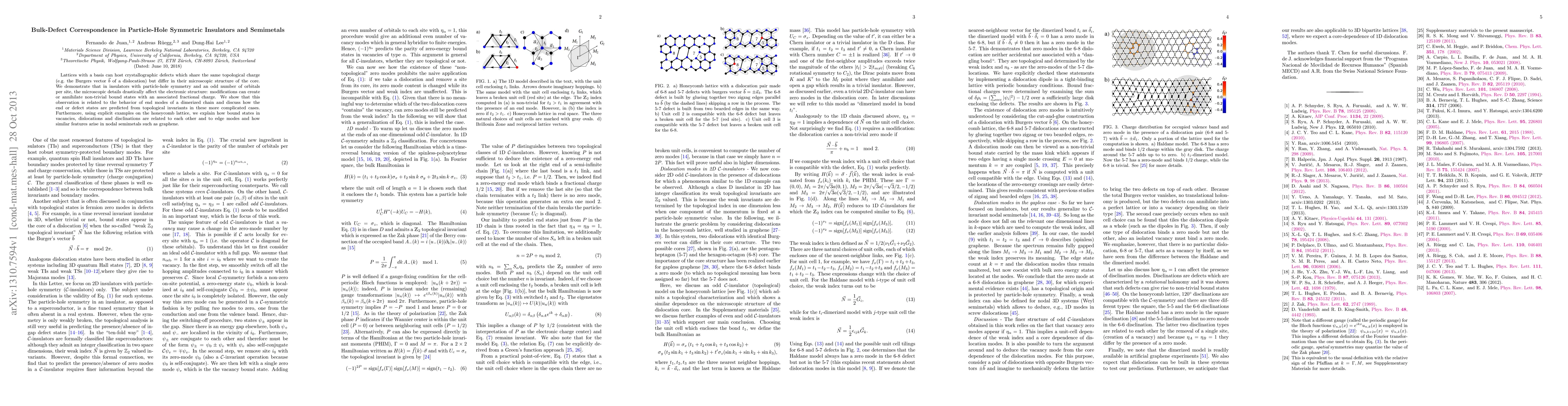 Lattices with a basis can host crystallographic defects which share the same topological charge (e.g.~the Burgers vector $\vec b$ of a dislocation) but differ in their microscopic structure of the core. We demonstrate that in insulators with particle-hole symmetry and an odd number of orbitals per site, the microscopic details drastically affect the electronic structure: modifications can create or annihilate non-trivial bound states with an associated fractional charge. We show that this observation is related to the behavior of end modes of a dimerized chain and discuss how the end or defect states are predicted from topological invariants in these more complicated cases. Furthermore, using explicit examples on the honeycomb lattice, we explain how bound states in vacancies, dislocations and disclinations are related to each other and to edge modes and how similar features arise in nodal semimetals such as graphene.