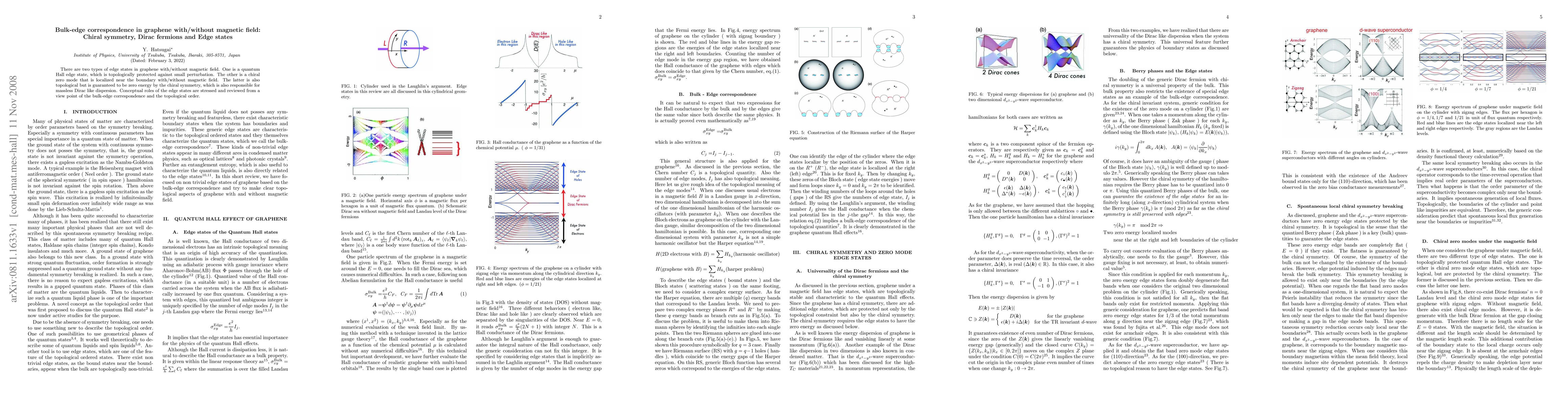 This paper explores the bulk-edge correspondence in graphene, focusing on the topologically protected edge states, including quantum Hall states and chiral zero modes, and their connection to chiral symmetry and Dirac fermions. The study highlights the significance of these edge states in understanding topological order.