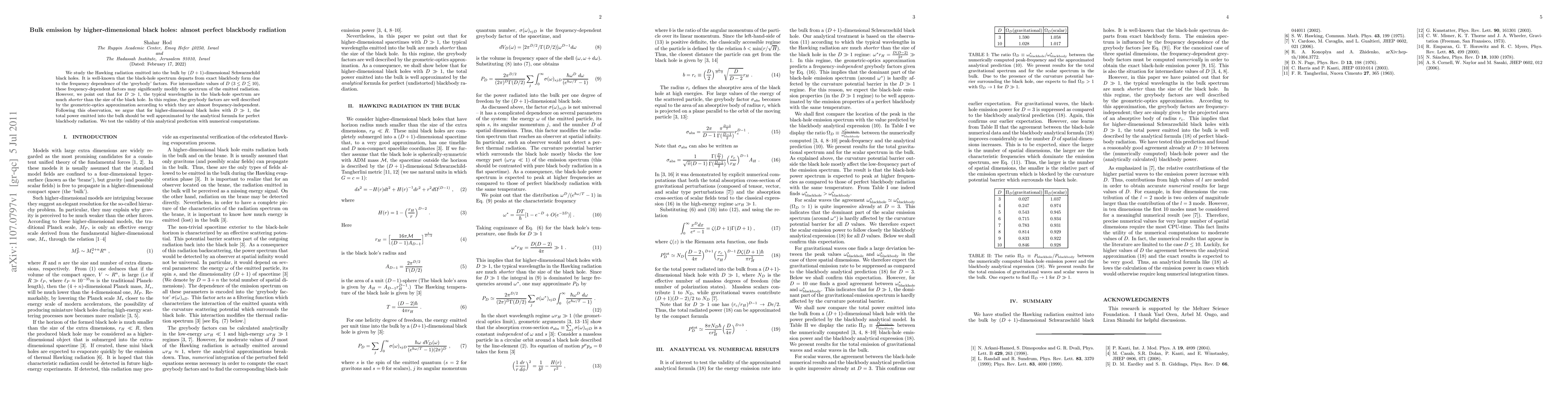 We study the Hawking radiation emitted into the bulk by $(D+1)$-dimensional Schwarzschild black holes. It is well-known that the black-hole spectrum departs from exact blackbody form due to the frequency dependence of the `greybody' factors. For intermediate values of $D$ ($3\leq D\lesssim10$), these frequency-dependent factors may significantly modify the spectrum of the emitted radiation. However, we point out that for $D\gg1$, the typical wavelengths in the black-hole spectrum are much {\it shorter} than the size of the black hole. In this regime, the greybody factors are well described by the geometric-optics approximation according to which they are almost frequency-independent. Following this observation, we argue that for higher-dimensional black holes with $D\gg1$, the total power emitted into the bulk should be well approximated by the analytical formula for perfect blackbody radiation. We test the validity of this analytical prediction with numerical computations.