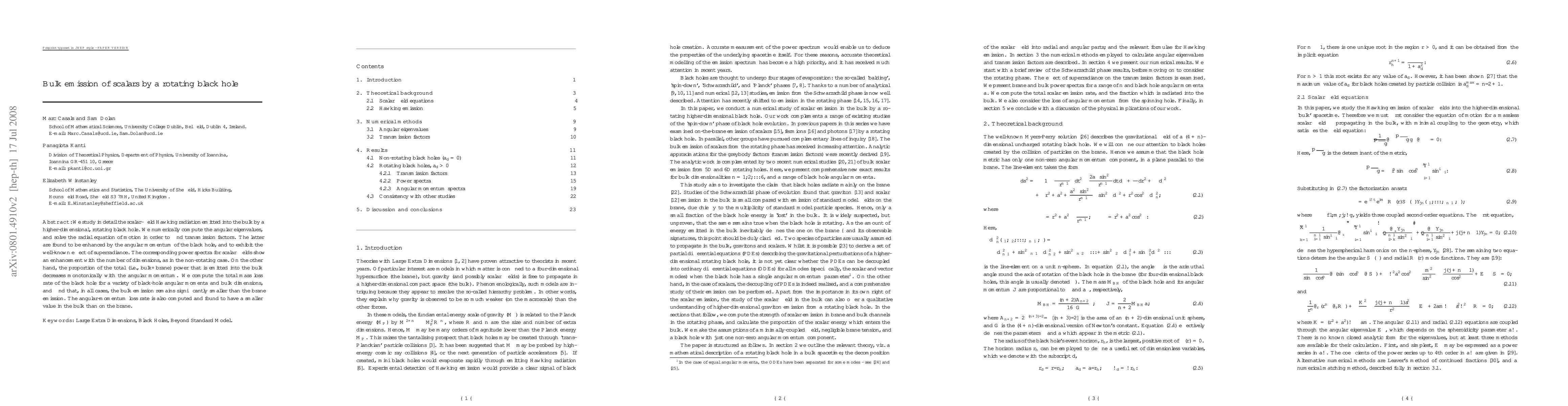 This research investigates the emission of scalar fields from a rotating, higher-dimensional black hole, revealing that angular momentum boosts the transmission factors and enhances superradiance. Despite an increase in power spectra with dimensions, bulk emission remains less significant compared to brane emission, with corresponding angular-momentum loss rates also lower in the bulk.