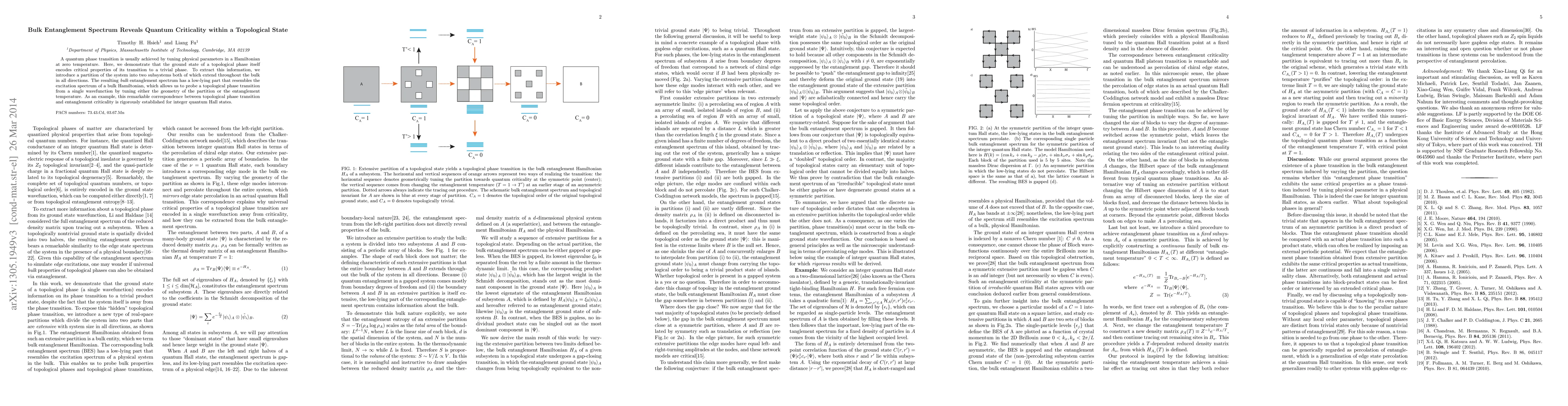 This paper demonstrates that the bulk entanglement spectrum of a topological phase reveals its quantum criticality, allowing for the study of phase transitions without external tuning. The low-lying part of the entanglement spectrum mirrors the excitation spectrum, enabling the investigation of topological phase transitions through the geometry of the partition or the entanglement temperature.
