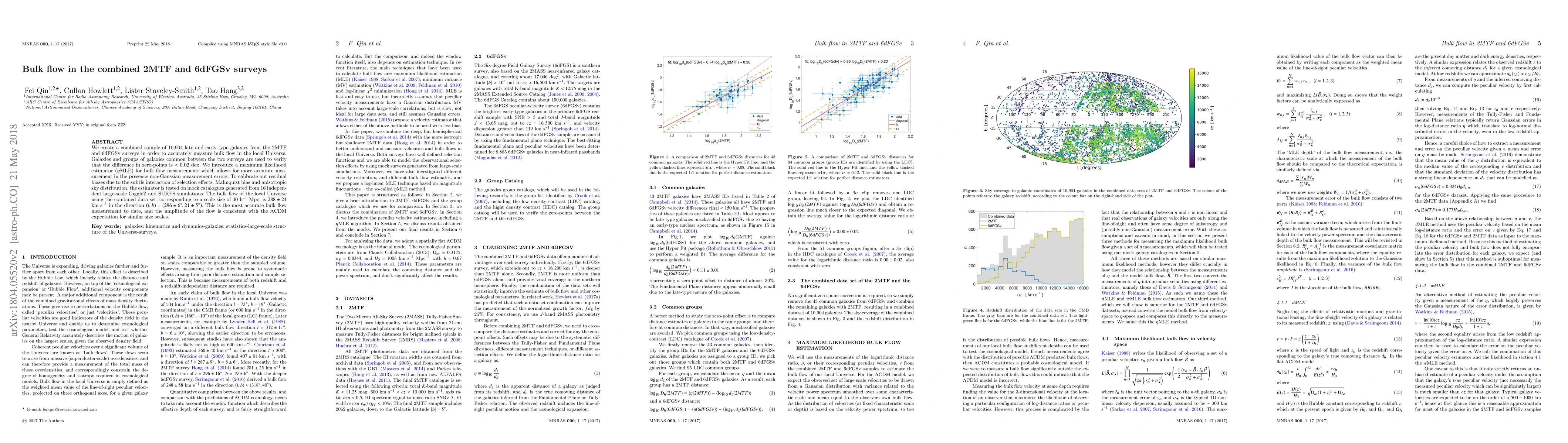 This research combines 2MTF and 6dFGSv surveys to measure bulk flow in the local Universe with 10,904 galaxies. Using a maximum likelihood estimator, they find a bulk flow of 288±24 km/s towards (l,b)=(296±6°, 21±5°) over 40 h$^{-1}$ Mpc, the most accurate measurement to date, consistent with ΛCDM expectations.