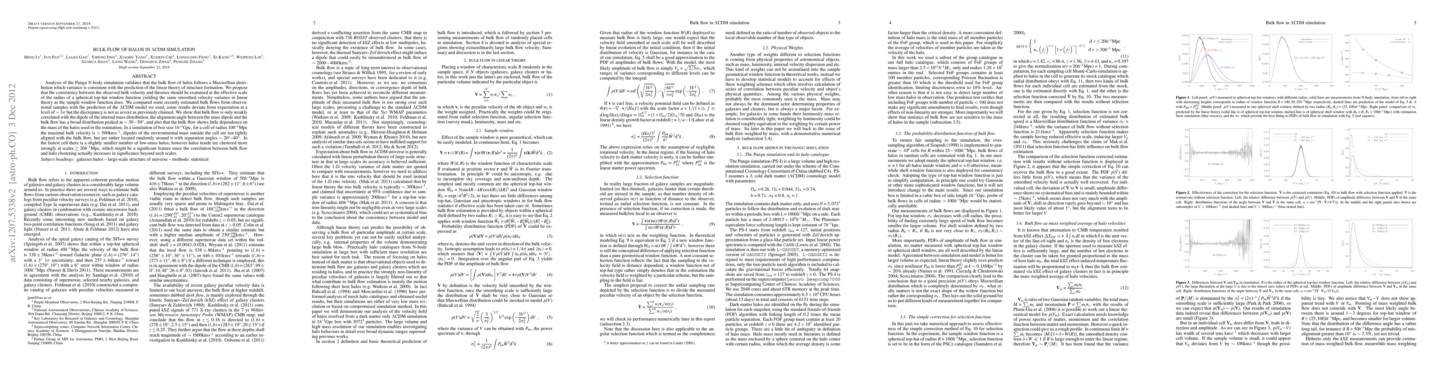 The Pangu N-body simulation confirms that the bulk flow of halos follows a Maxwellian distribution, consistent with the linear theory of structure formation. The study finds that while some observational bulk flows deviate from predictions at ~3σ, the discrepancy is less severe than previously reported, and the bulk flow is weakly correlated with the mass distribution dipole.