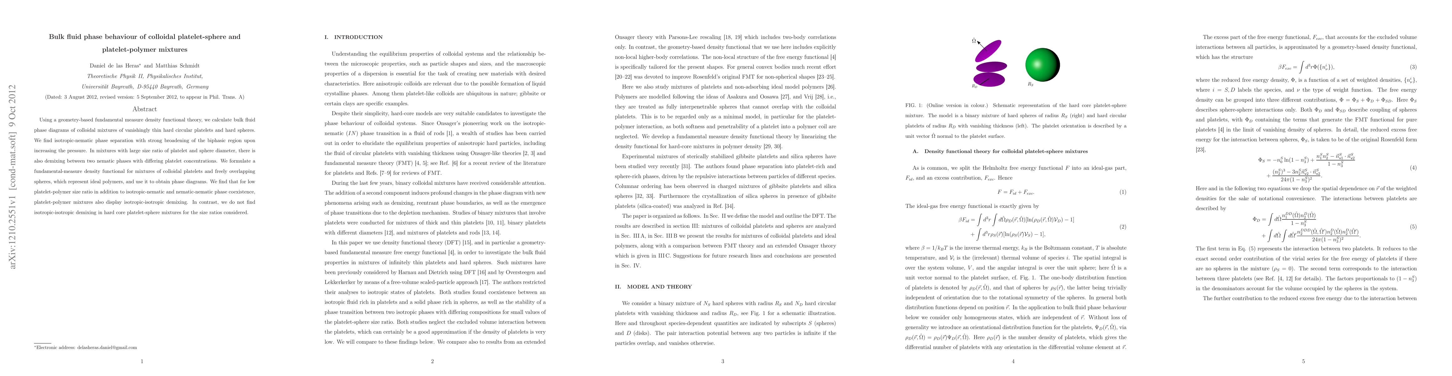 This paper uses fundamental measure density functional theory to explore phase behavior in colloidal mixtures of platelets and spheres, finding isotropic-nematic phase separation and nematic-nematic demixing. It also investigates mixtures of platelets and polymers, revealing isotropic-isotropic demixing in addition to other phase transitions.