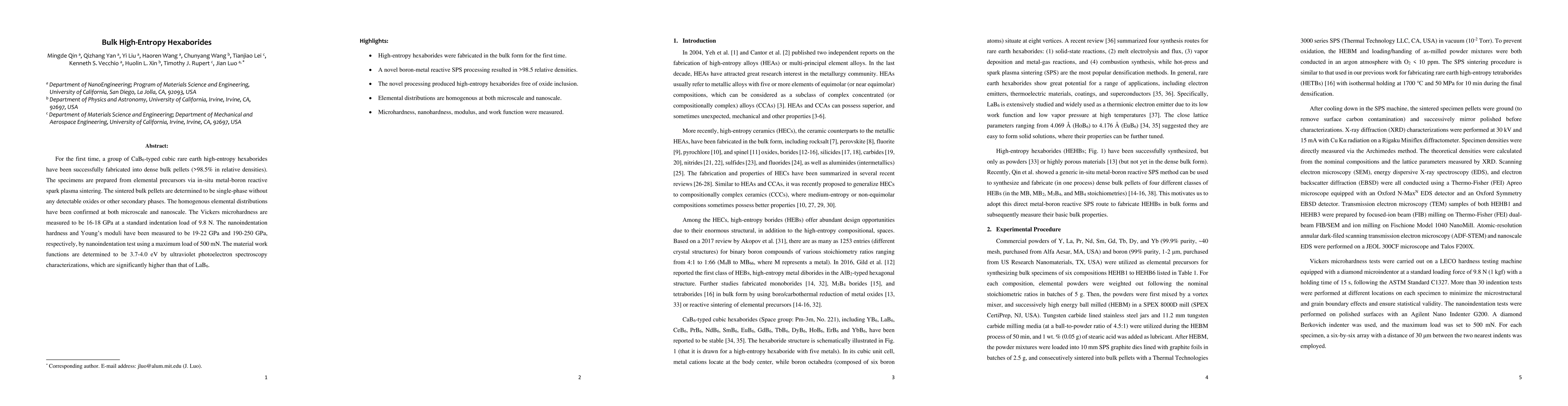 Researchers successfully created dense bulk pellets of cubic rare earth high-entropy hexaborides with exceptional hardness and Young's moduli, outperforming existing materials like LaB6.