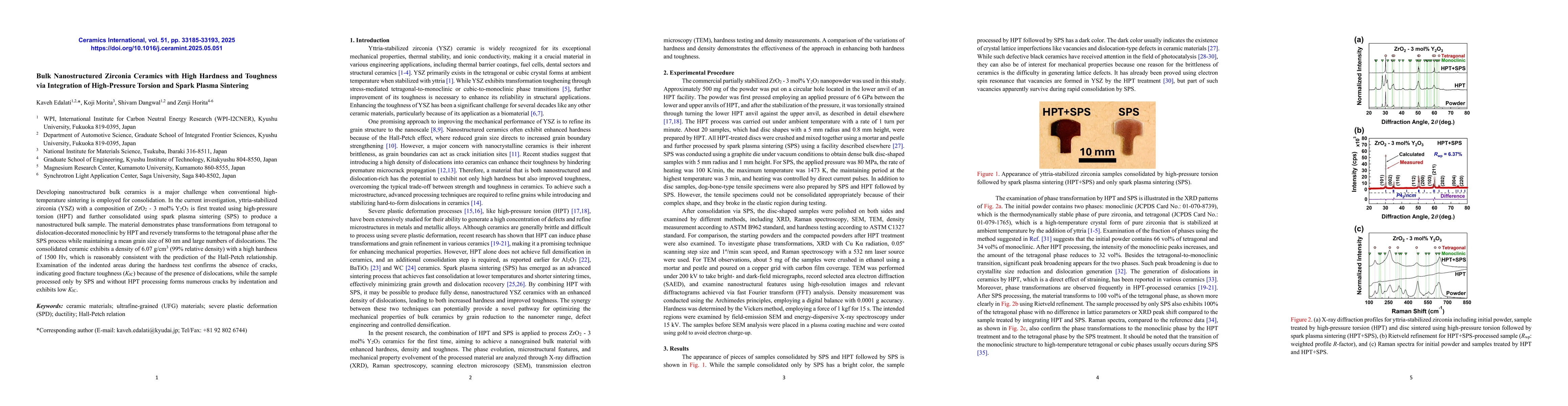 The research methodology involved treating yttria-stabilized zirconia (YSZ) with high-pressure torsion (HPT) followed by consolidation using spark plasma sintering (SPS) to produce nanostructured bulk samples.
