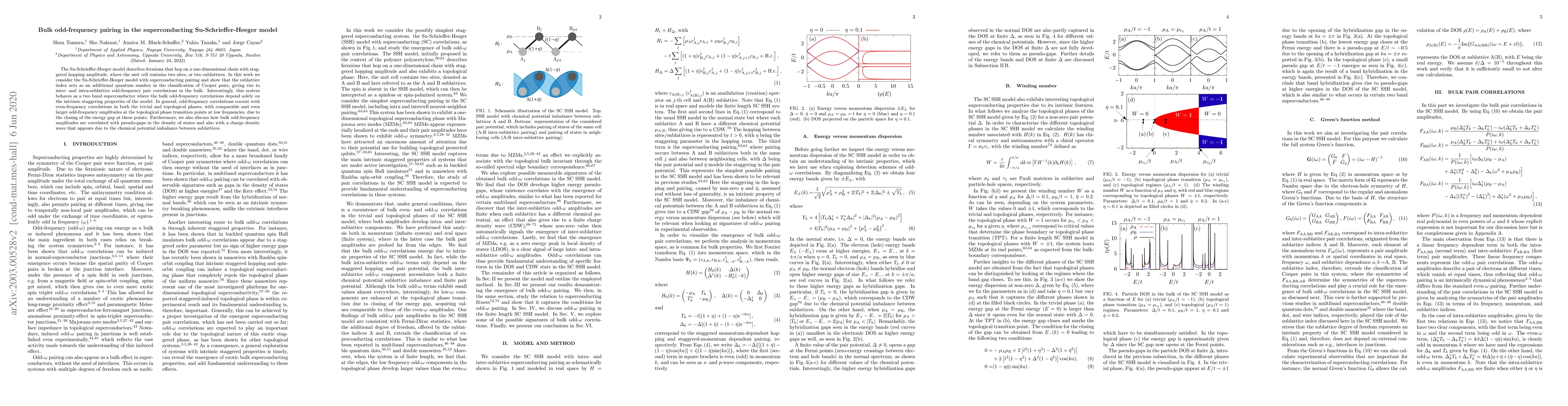This paper investigates the Su-Schrieffer-Heeger model with superconducting pairing, revealing bulk odd-frequency pairing correlations due to sublattice staggering, and shows that these correlations coexist with even-frequency pairing, especially pronounced at topological phase transitions.