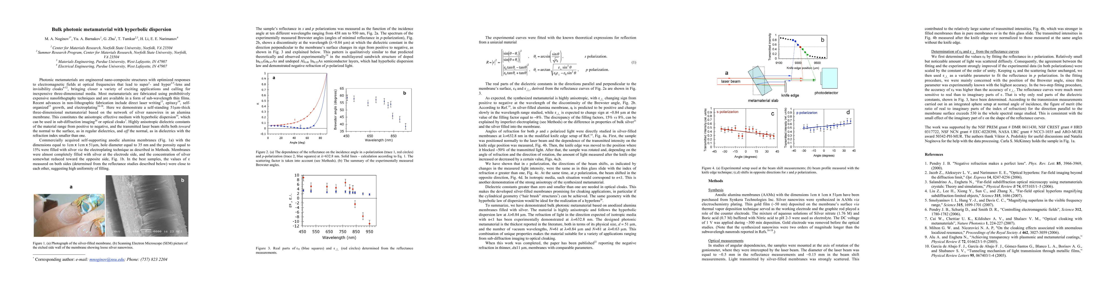 This research presents a bulk three-dimensional metamaterial made from silver nanowires in an alumina membrane, exhibiting hyperbolic dispersion for anisotropic effective medium applications. The metamaterial, the thickest reported, enables sub-diffraction imaging and optical cloaking due to its unique refractive properties.